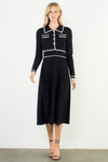 Chic and timeless, this black long-sleeve collared knit dress features elegant cream and scalloped trim that adds the perfect touch of contrast. Soft, flattering, and effortlessly polished, itβs ideal for workdays, brunch dates, or any occasion where you want to look put-together with minimal effort.