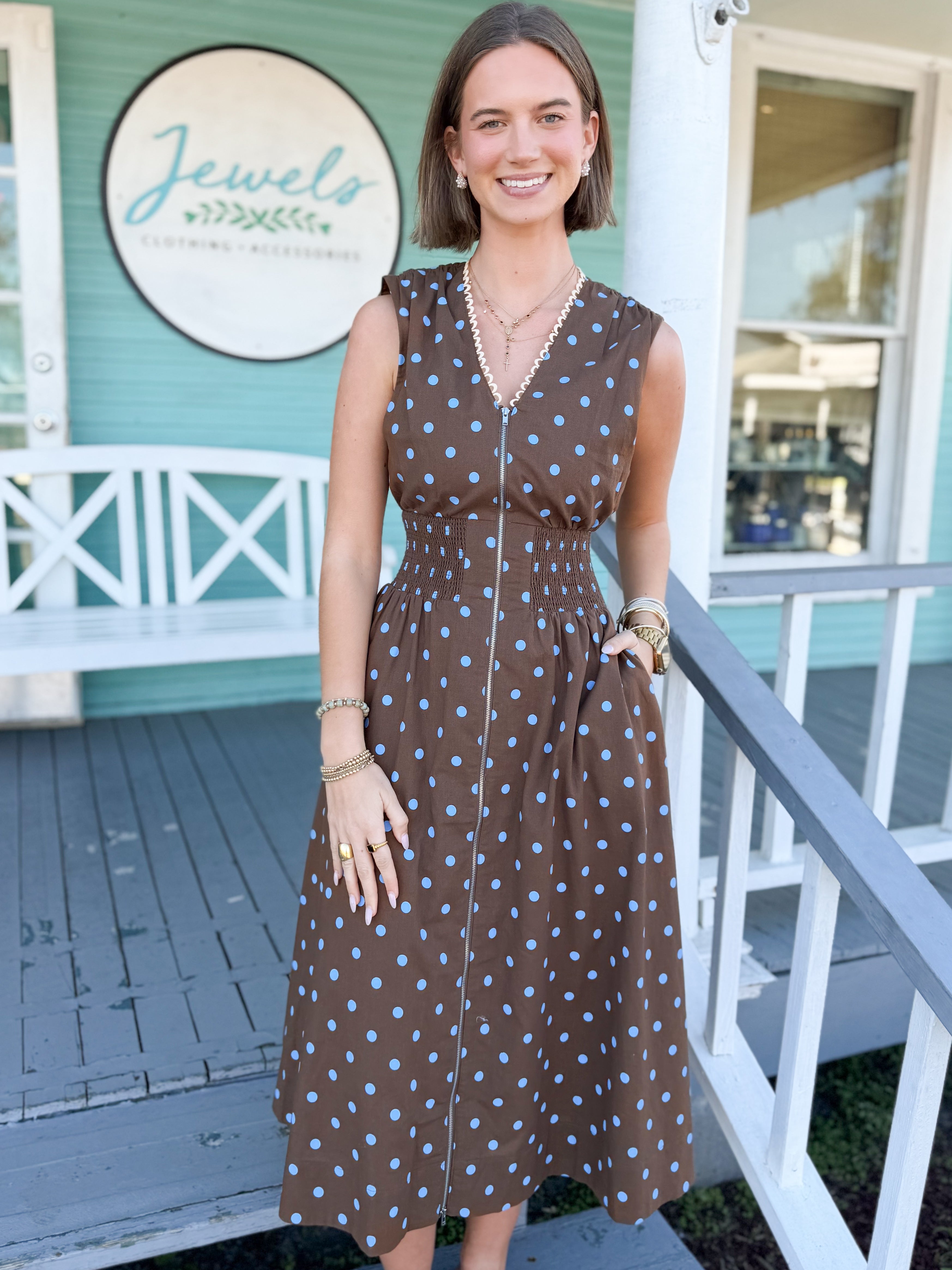 (THML) The Penny Polka Dot Zip Dress-Brown