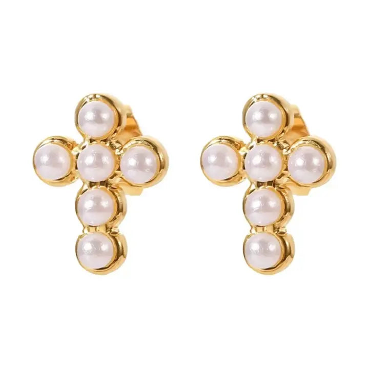 Our Pearl Cross Studs are an exquisite piece from HJane Jewels. These studs are made of 18k gold plated stainless steel, giving them a radiant shine that will elevate any look. They are a versatile addition to your jewelry collection. With HJane Jewels, you can always expect quality and durability in every piece. Our Pearl Cross Studs are no exception. They are designed to last, so you can enjoy their timeless beauty for years to come.