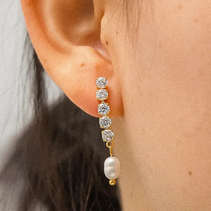 The Anton CZ Pearl Drop Earring-18k Gold
