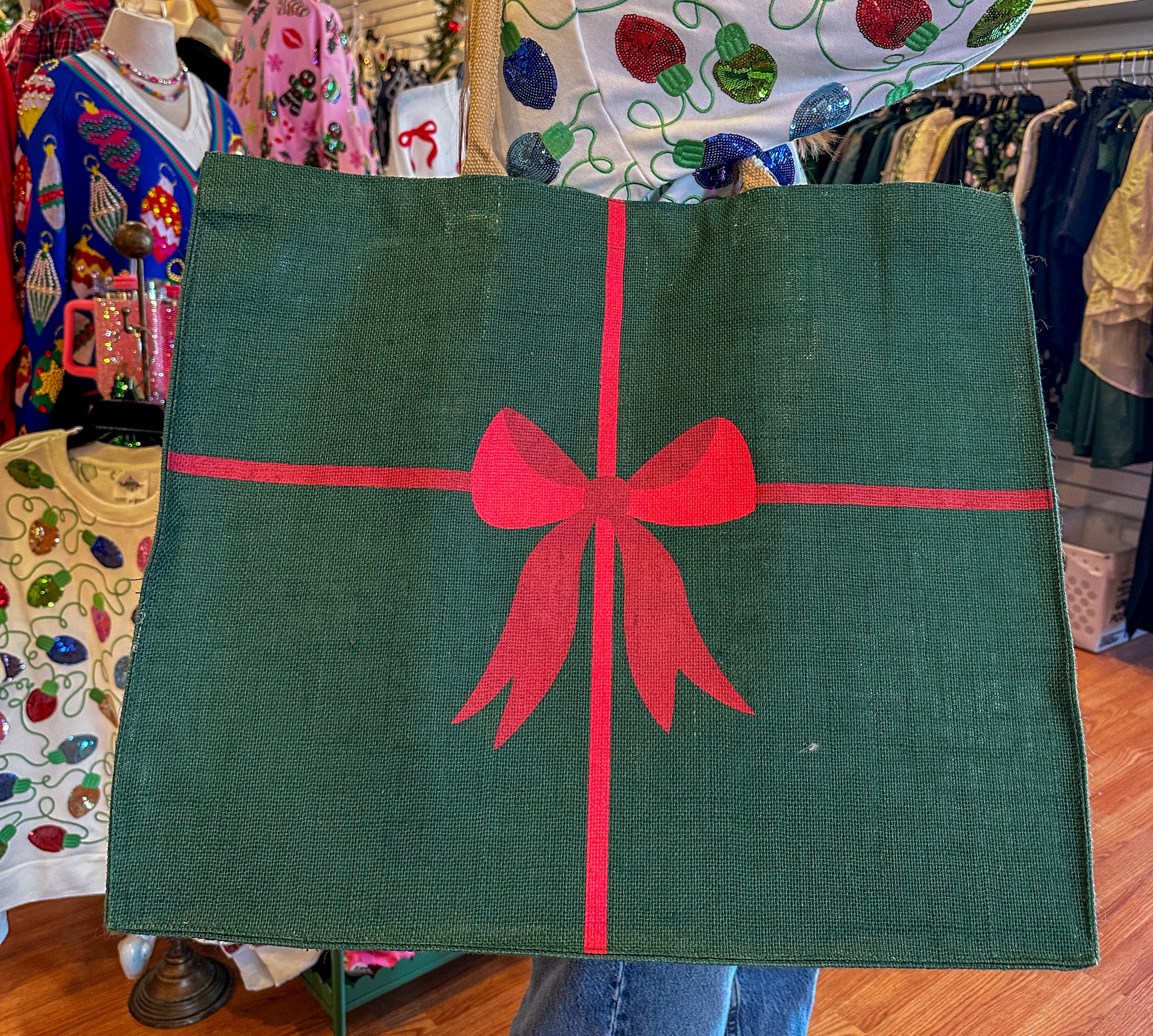 Celebrate the season in style with The Christmas Bow Carryall Tote in green. Spacious and festive, this tote is perfect for holiday shopping, travel, or gifting. Durable and chic.