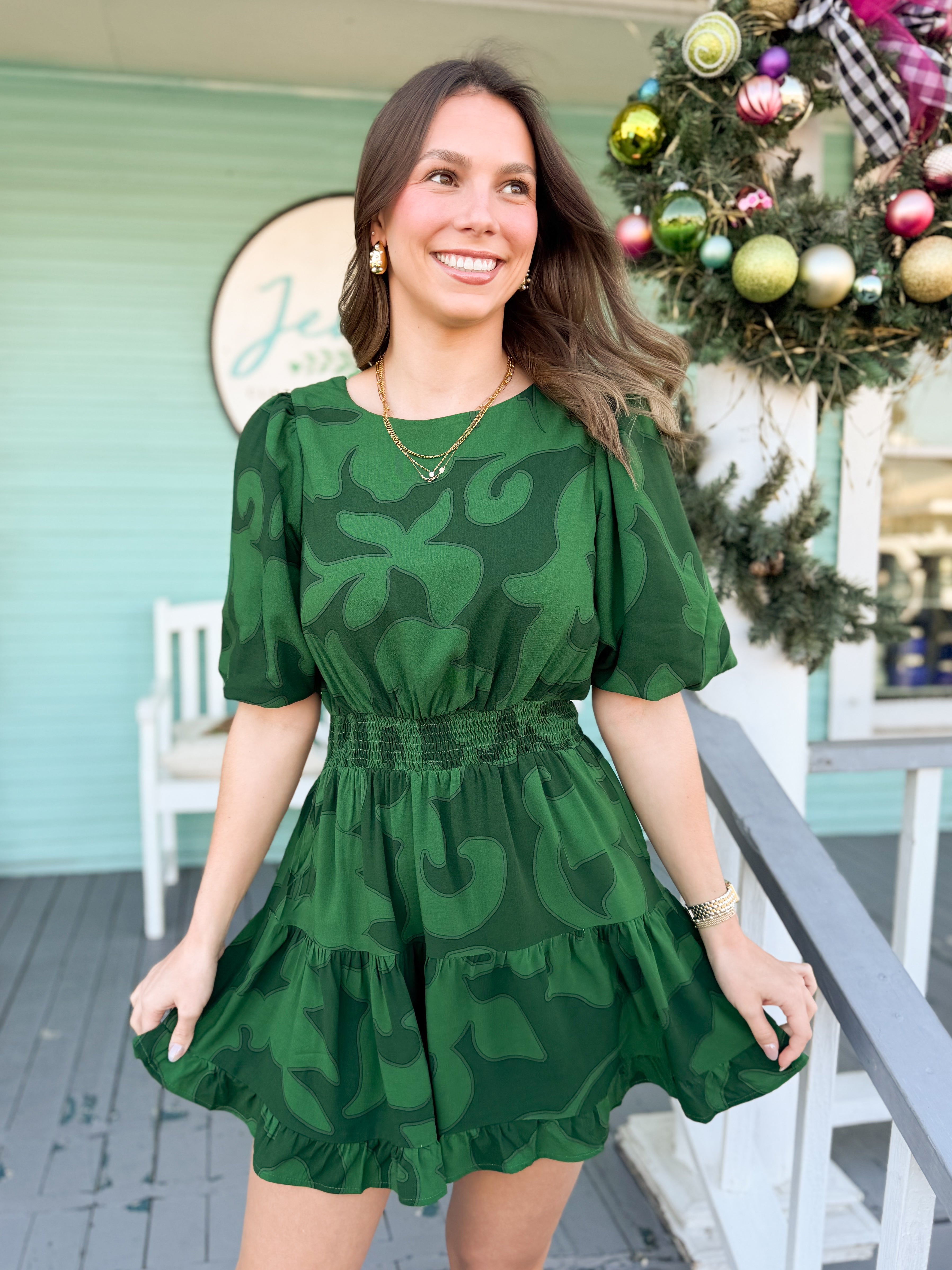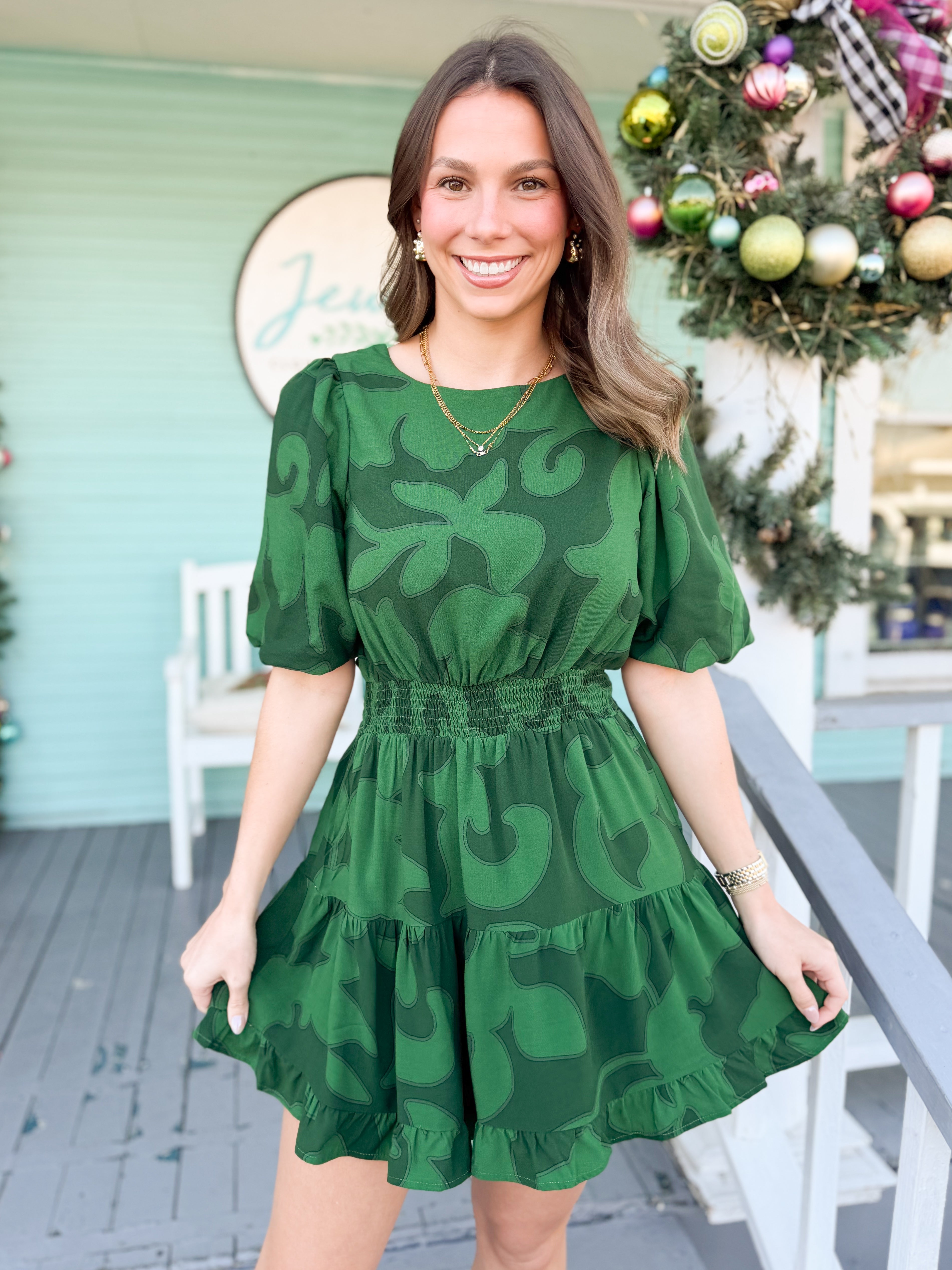 The Benti Abstract Ruffle Mini Dress-Emerald