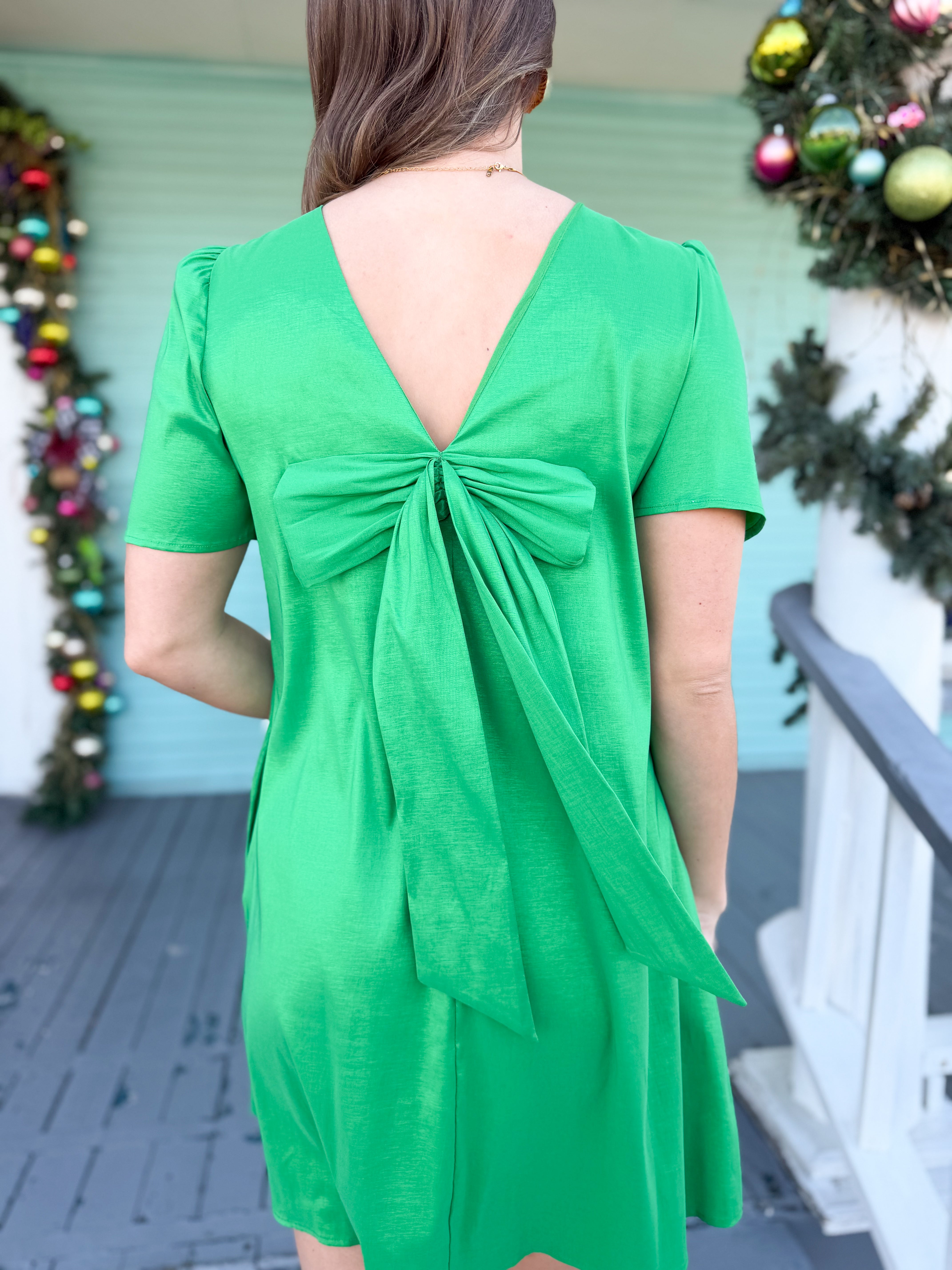 The Chappell Bow Dress-Green