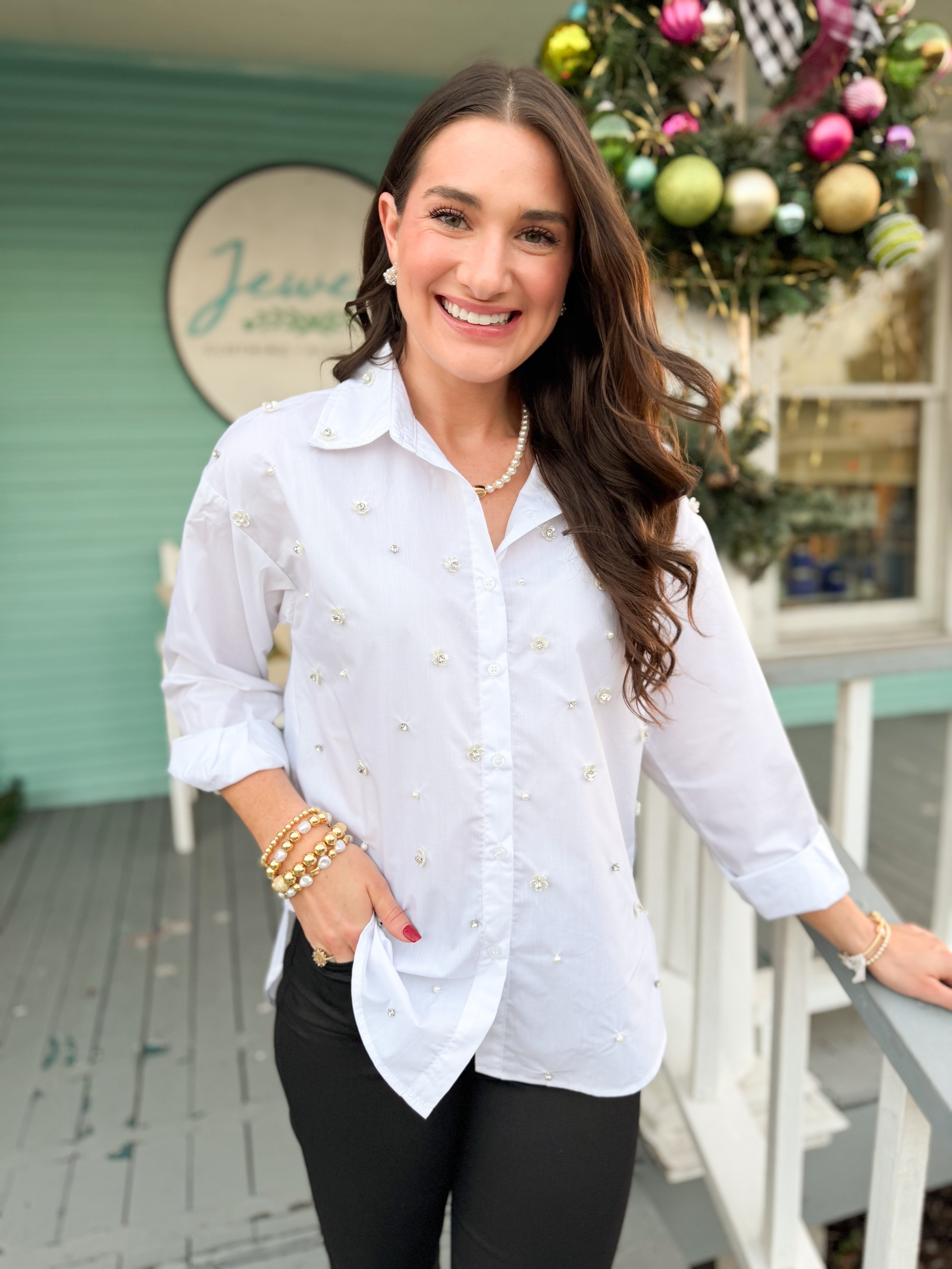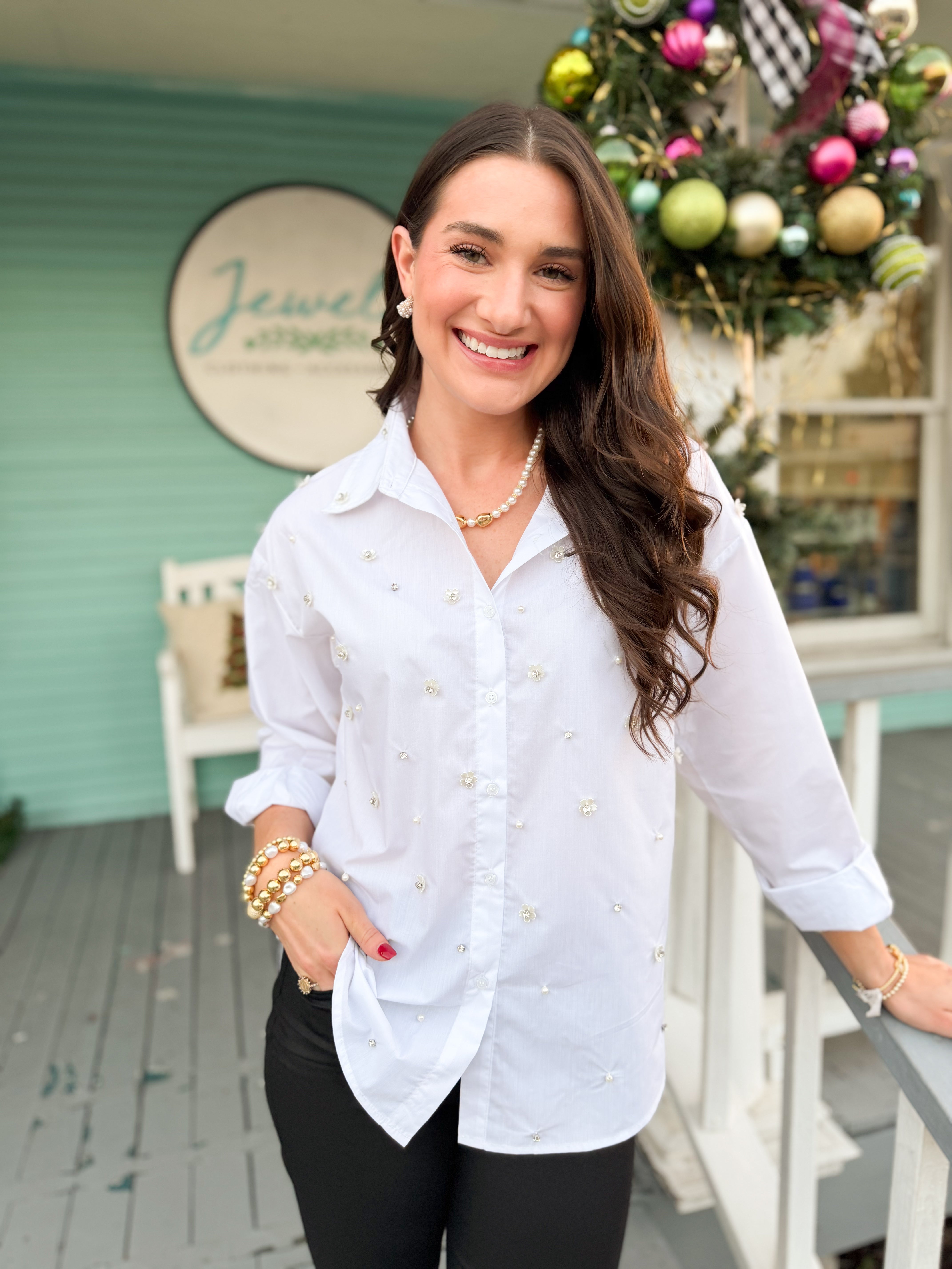 The Dawn Rhinestone Top-White