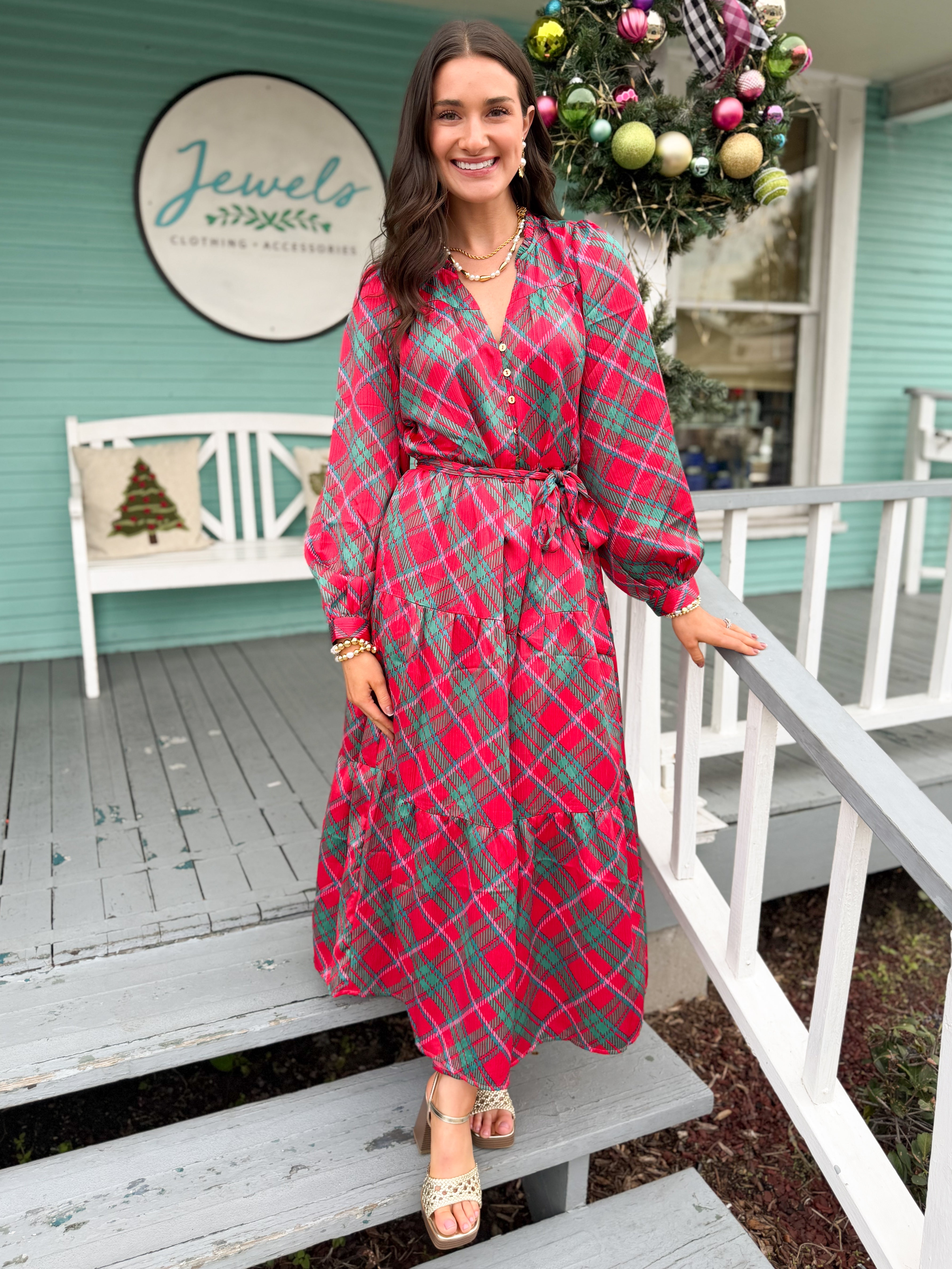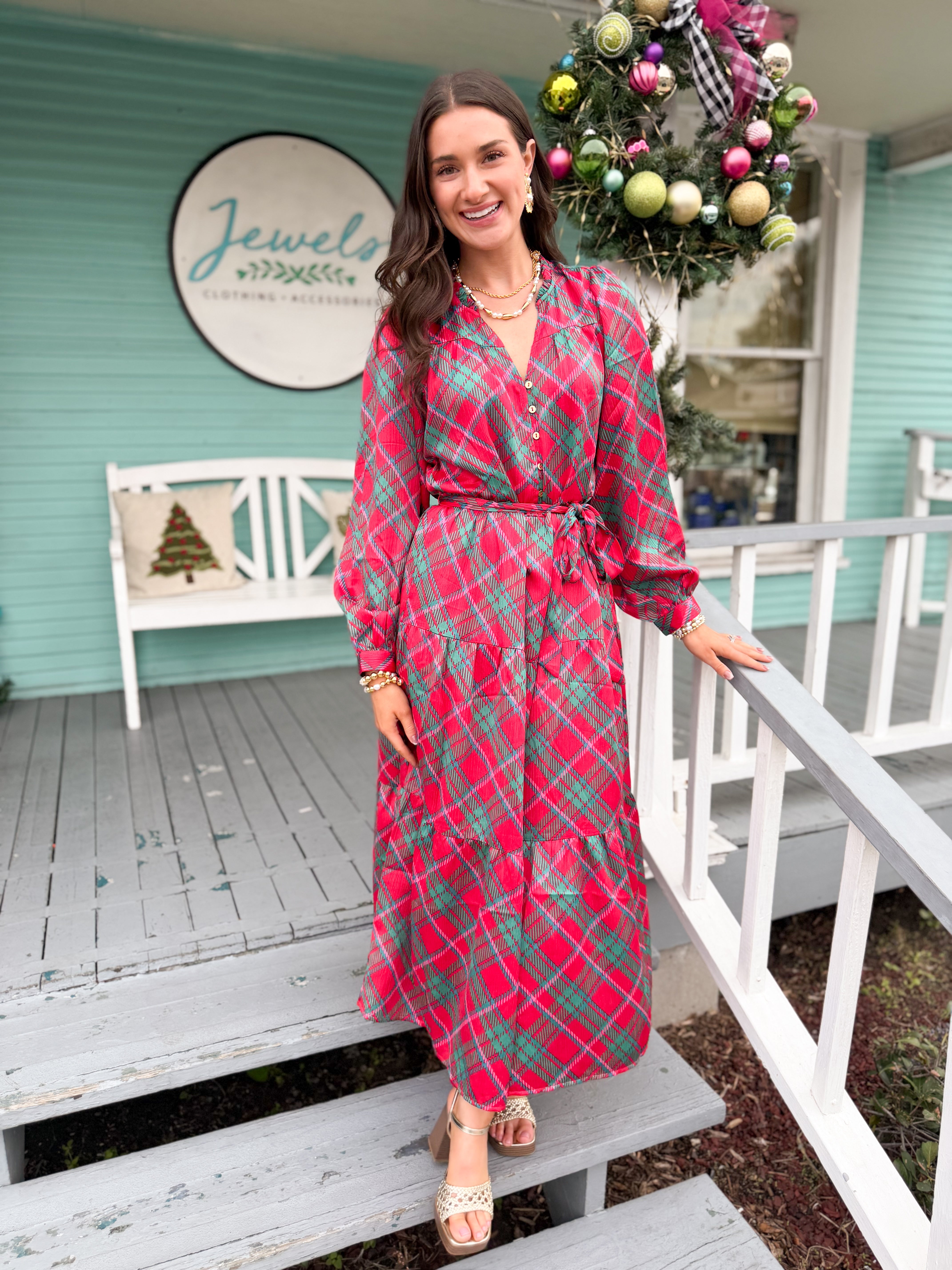 The Gracelyn Plaid Dress-Red