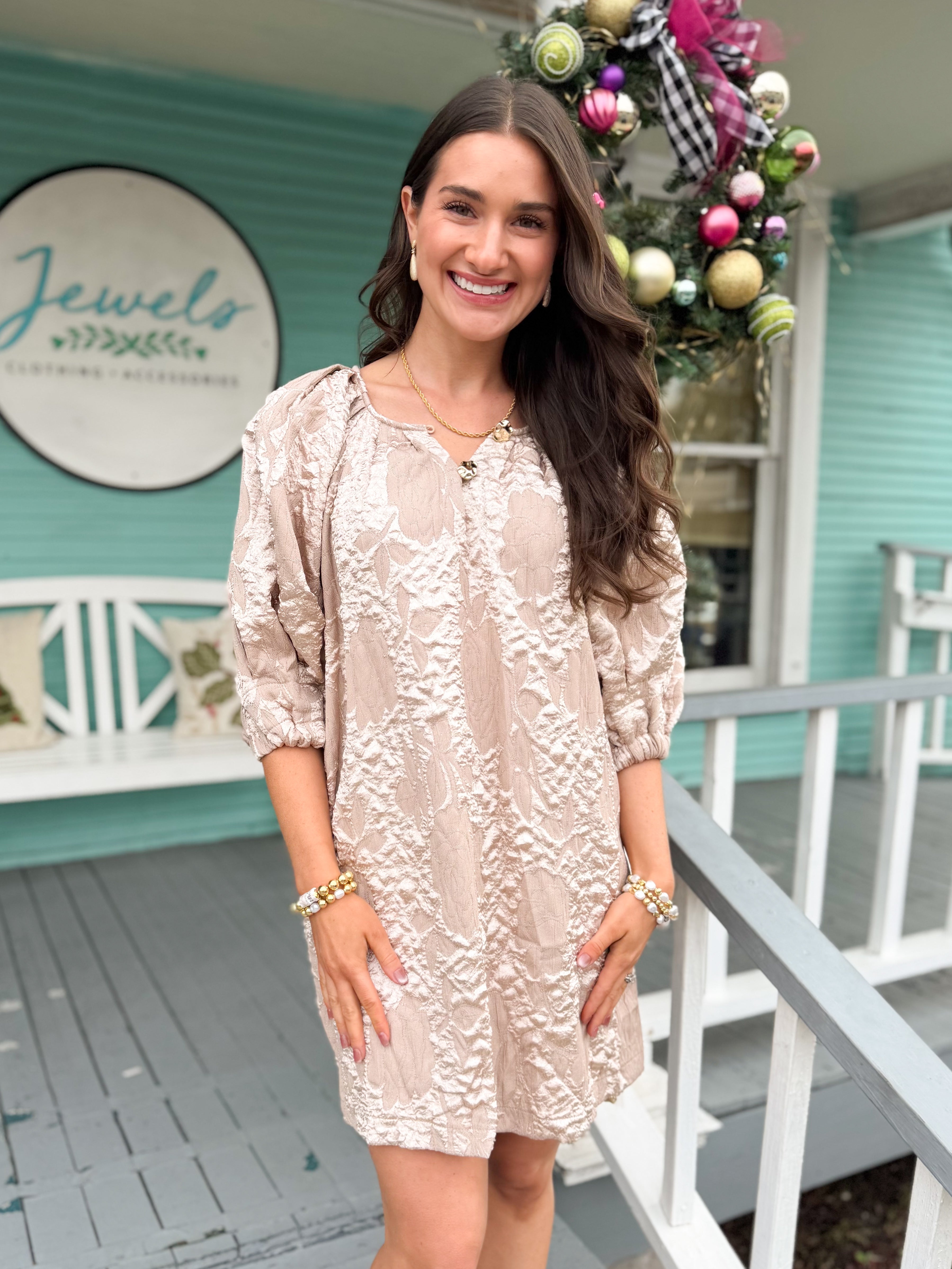 Our champagne glimmer dress shines from every angle — perfect for holiday parties, New Year’s celebrations, girls’ night out, or anytime you want to steal the spotlight!