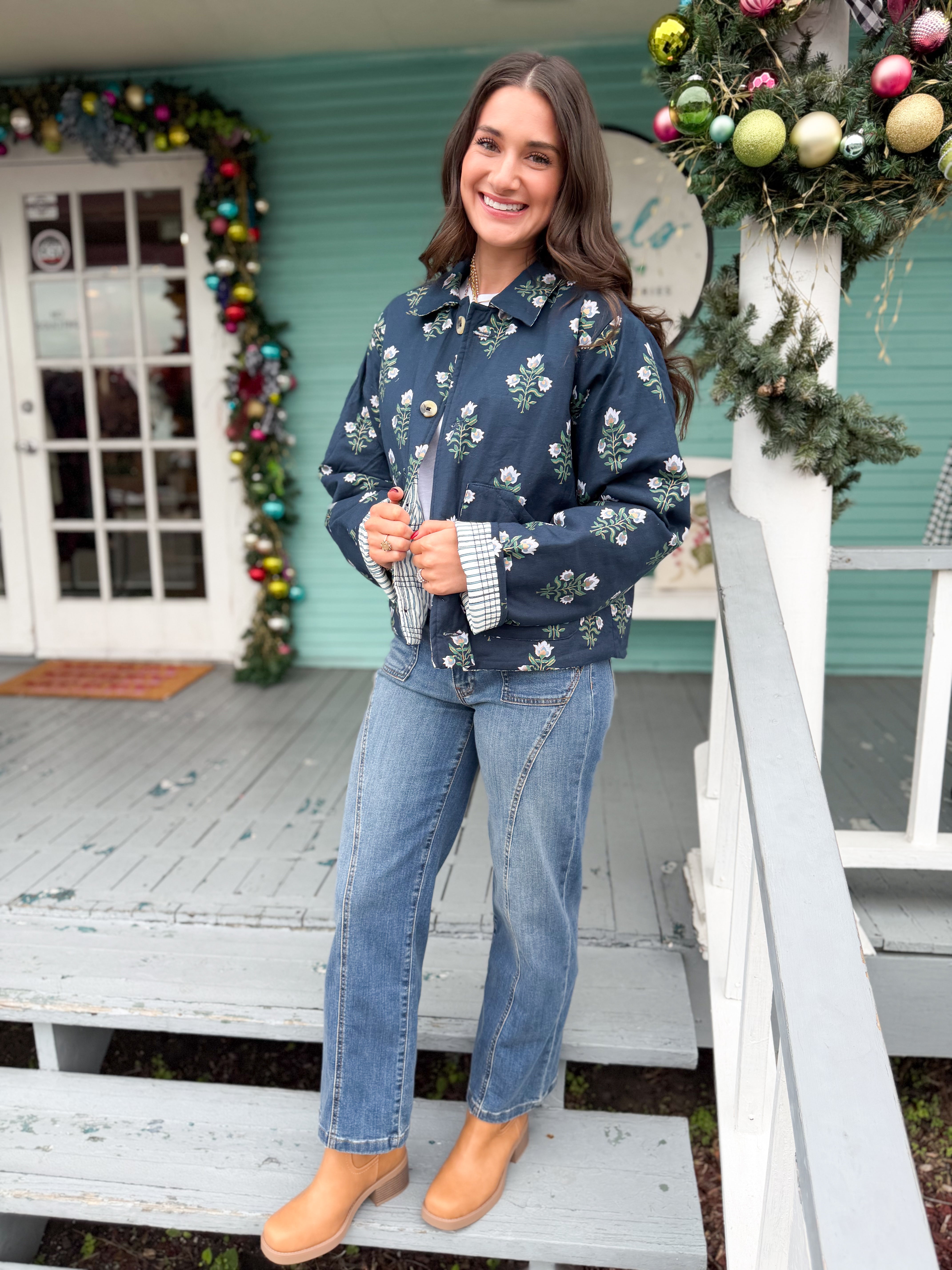 The Reagan Quilted Striped Jacket-Navy