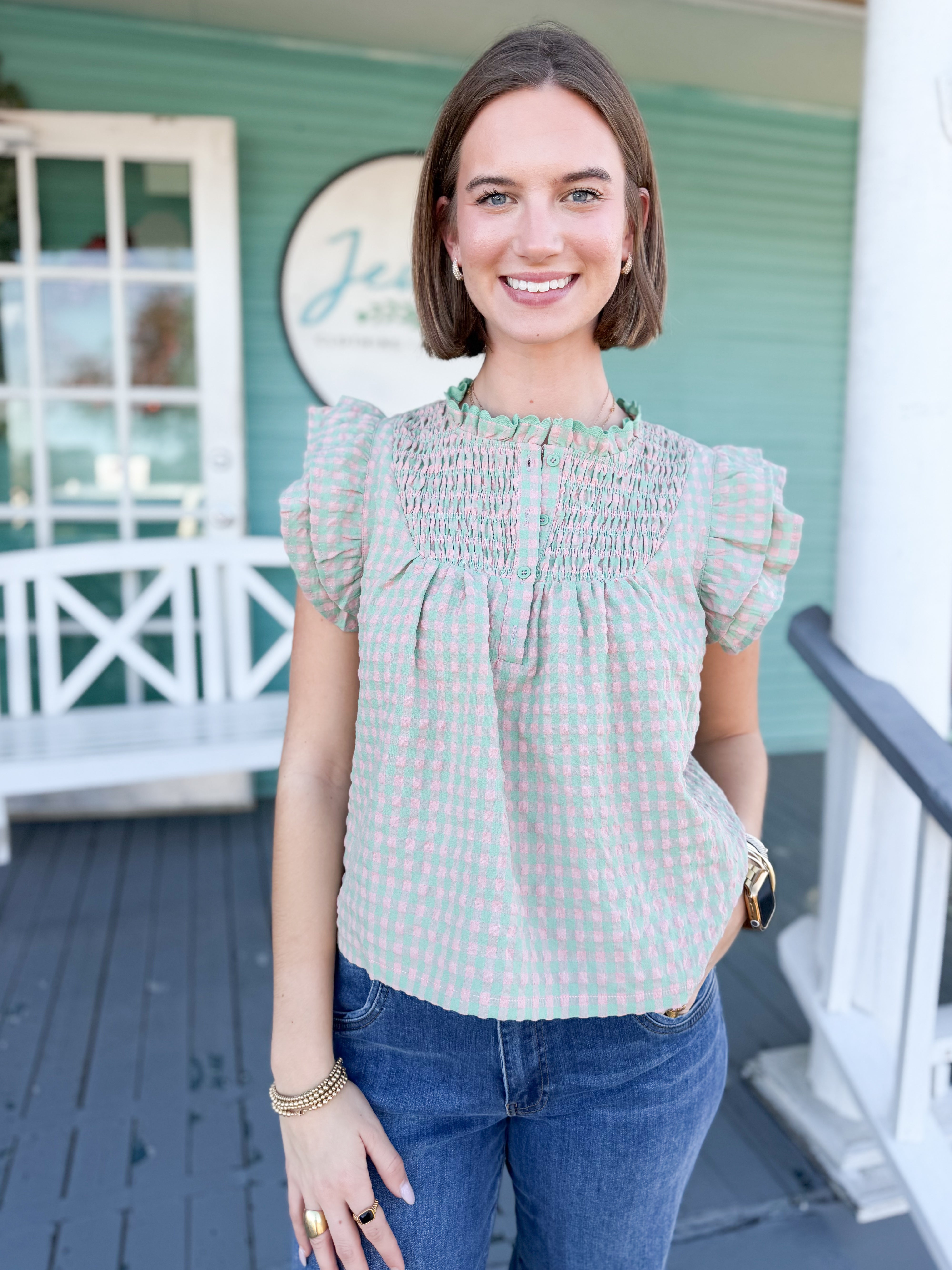 The Abby Gingham Top-Coral