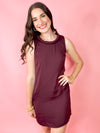 Elevate your wardrobe with the wine colored Alice Mini Shift Dress, designed in a lightweight, silky woven fabric that drapes beautifully while remaining fully lined for a flawless silhouette. The delicate ball detail along the neckline adds an elegant and refined touch, making this dress perfect for sophisticated occasions. Thoughtfully crafted with a back zipper closure for a sleek fit and slit side pockets that combine practicality with style. Whether styled with heels for a polished evening ensemble or paired with flats for a chic daytime look, this versatile dress effortlessly transitions from day to night with timeless grace.