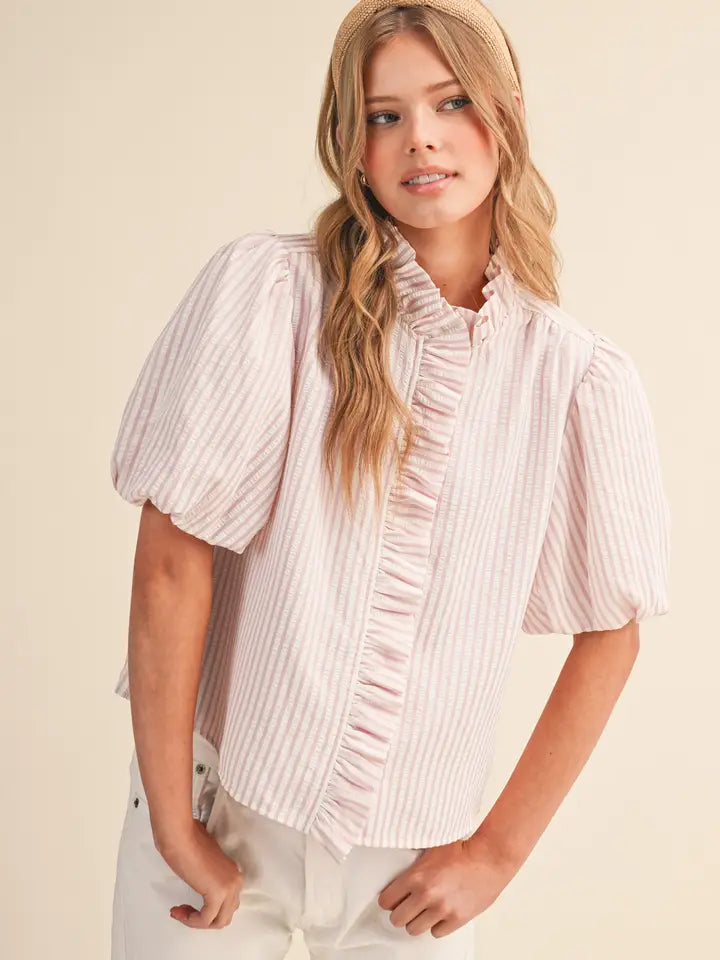 The Avery Striped Ruffled Top-Pink