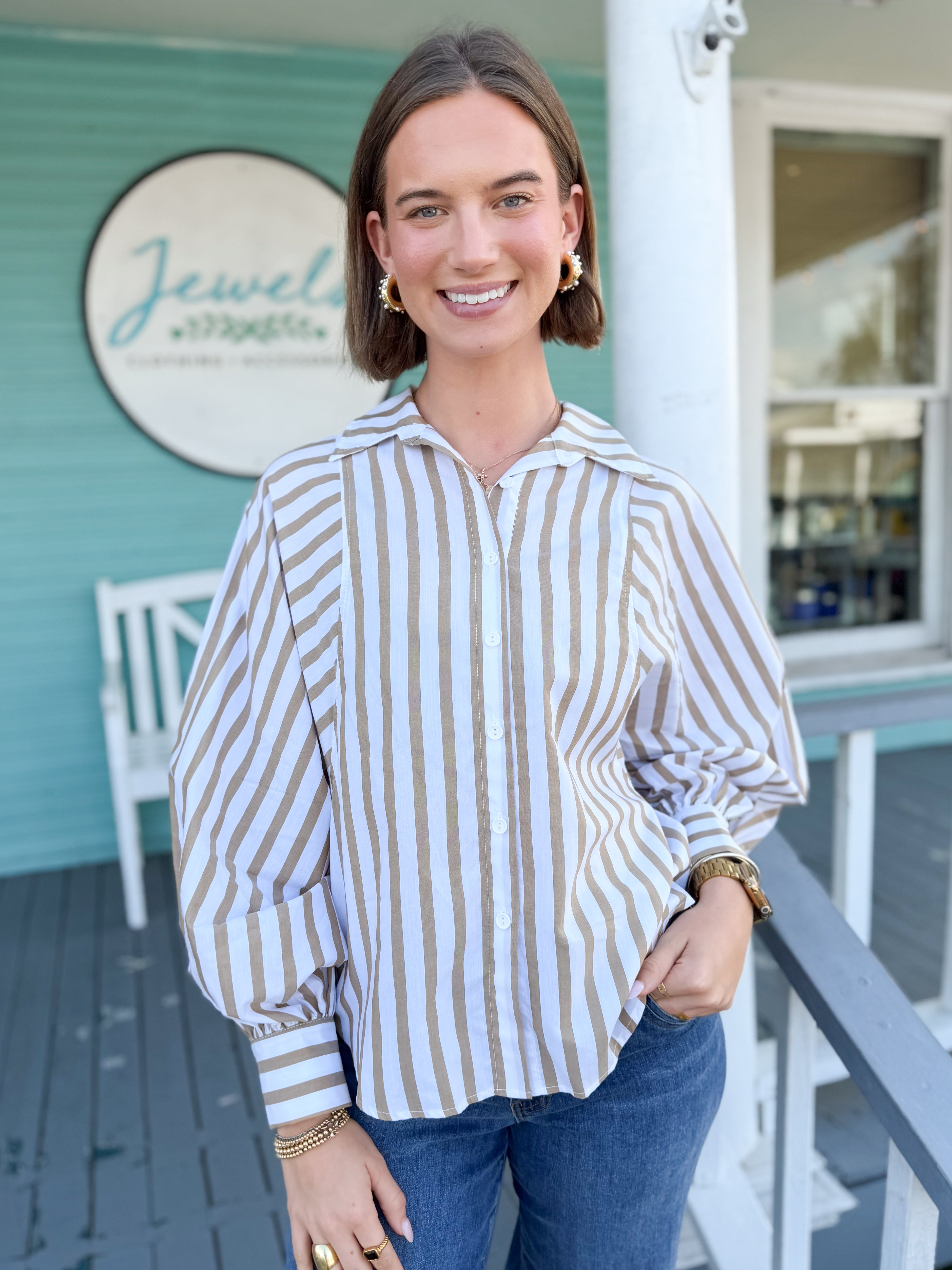 The Brooks Batwing Stripe Top-Camel