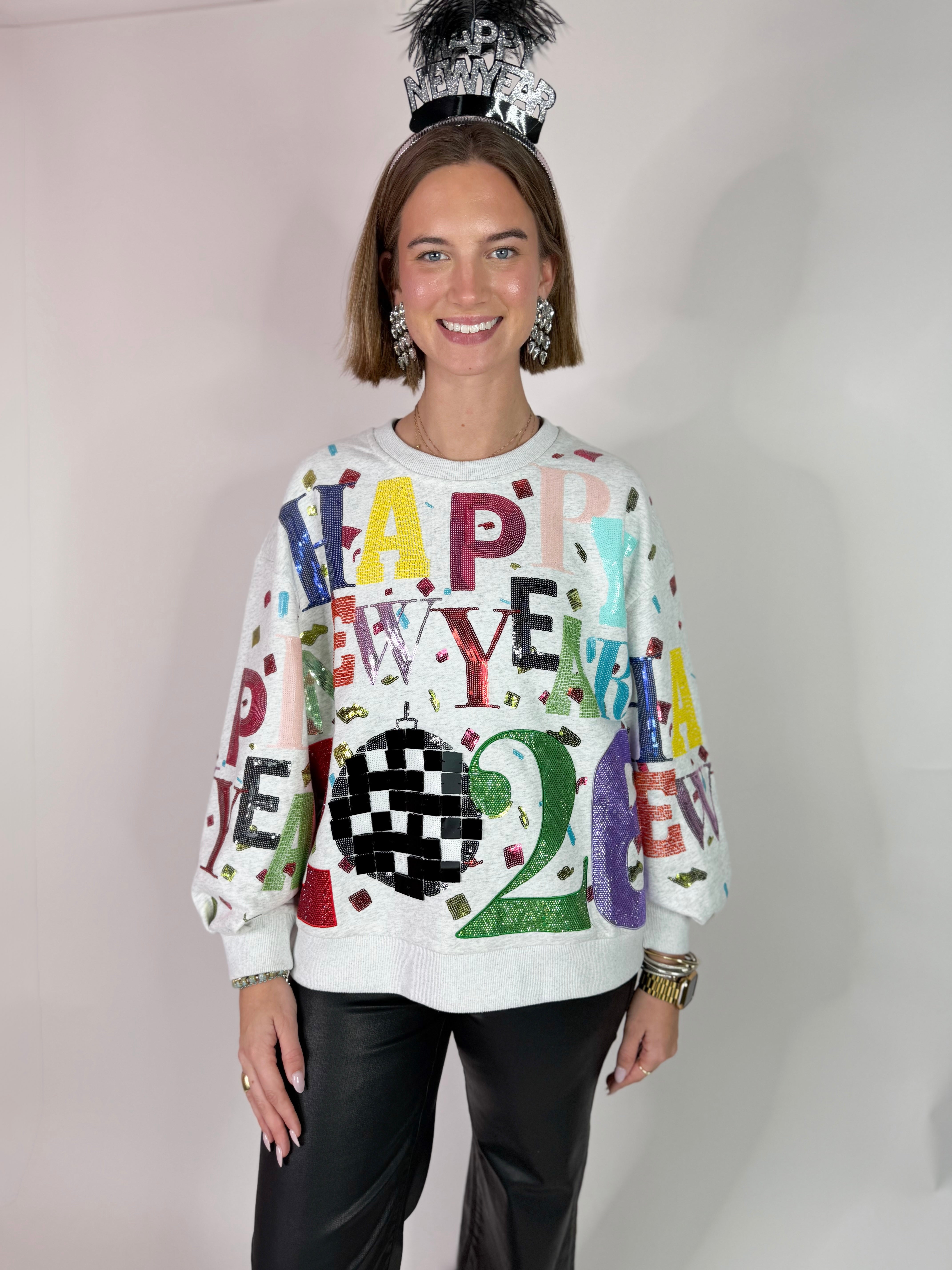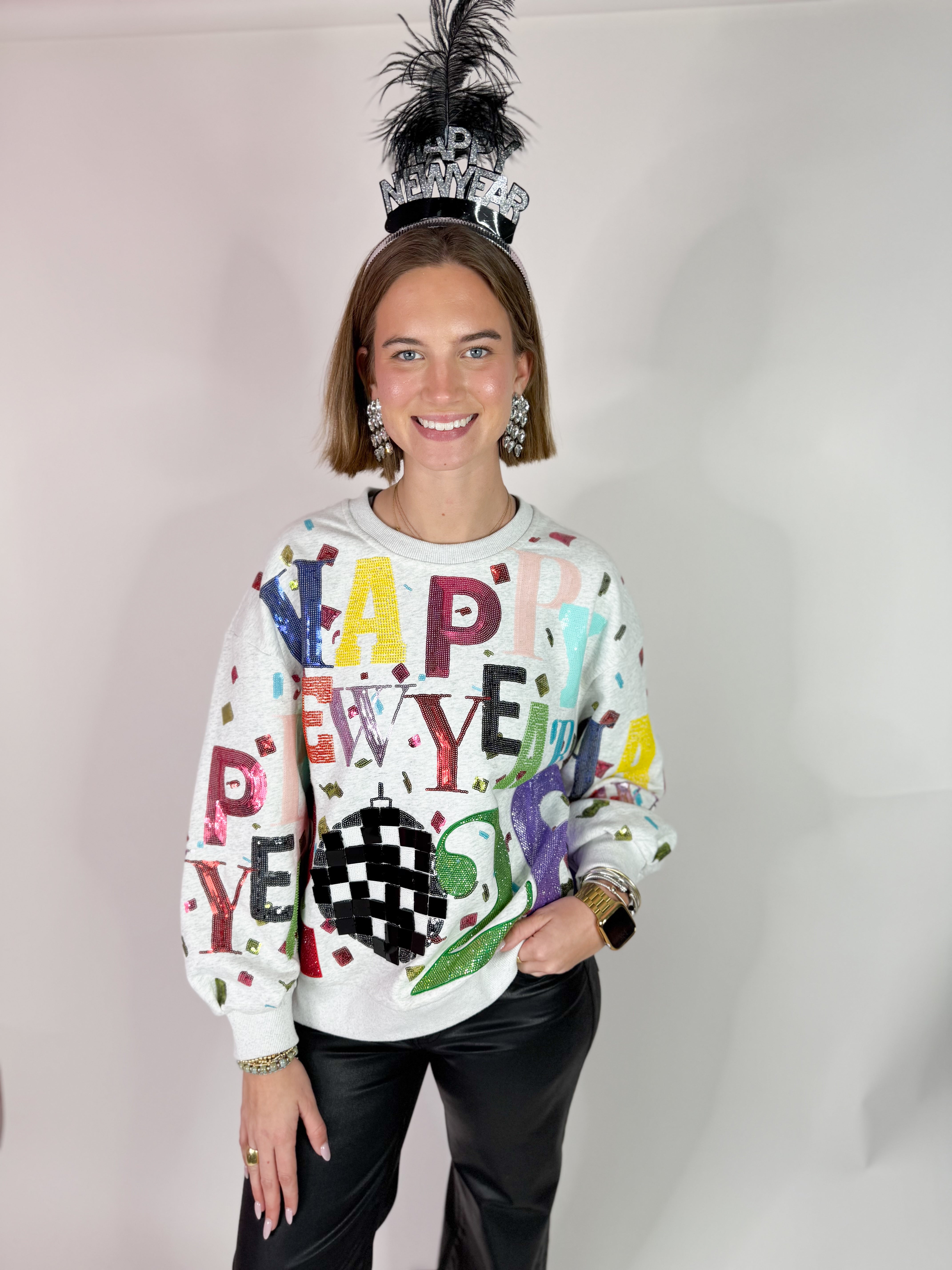 Whether you're ringing in midnight, hosting a NYE party, or just want to sparkle your way through the season, this sweatshirt brings effortless glam to any outfit. Pair it with leggings, jeans, or a sequin skirt for a statement look that truly pops.