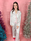 Celebrate the season in style with this Bow Christmas Print Satin PJ Set!  Featuring a playful holiday bow print and charming striped ruffle details, this silky-soft set is both festive and feminine — perfect for cozy nights and Christmas mornings alike.
