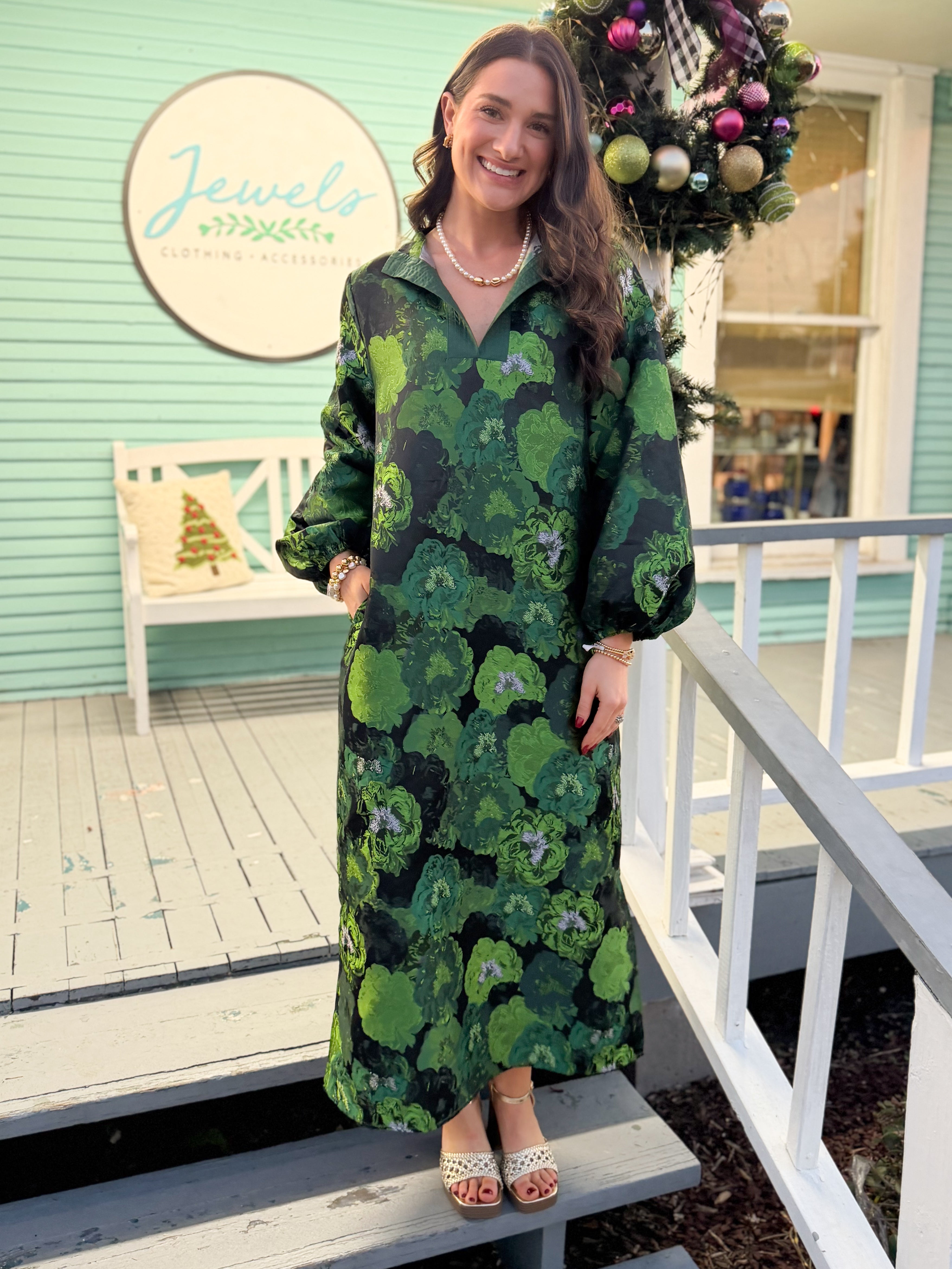 The Sierra Floral Puff Sleeve Midi Dress-Green