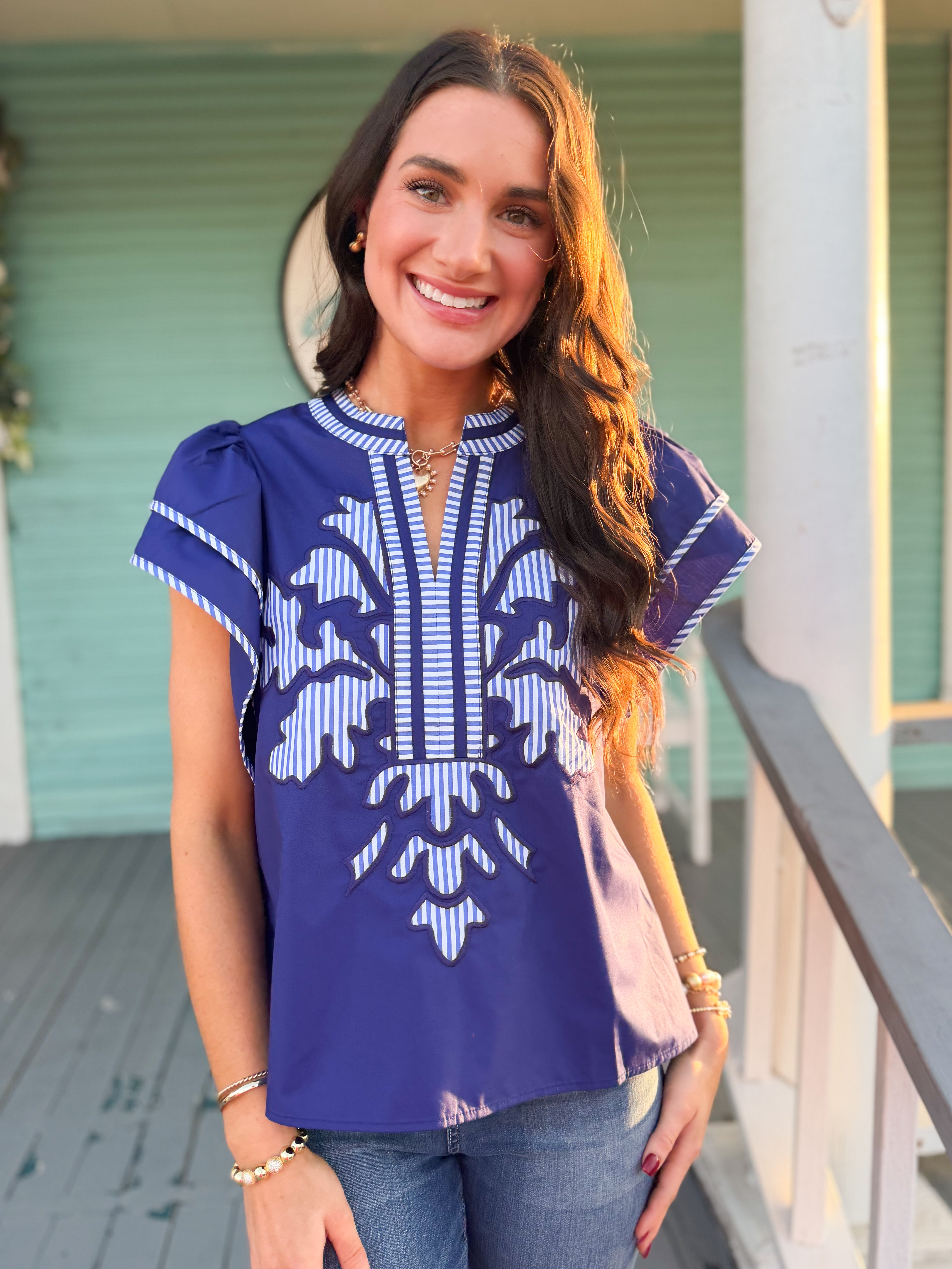 The Julian Embroidered Top-Navy