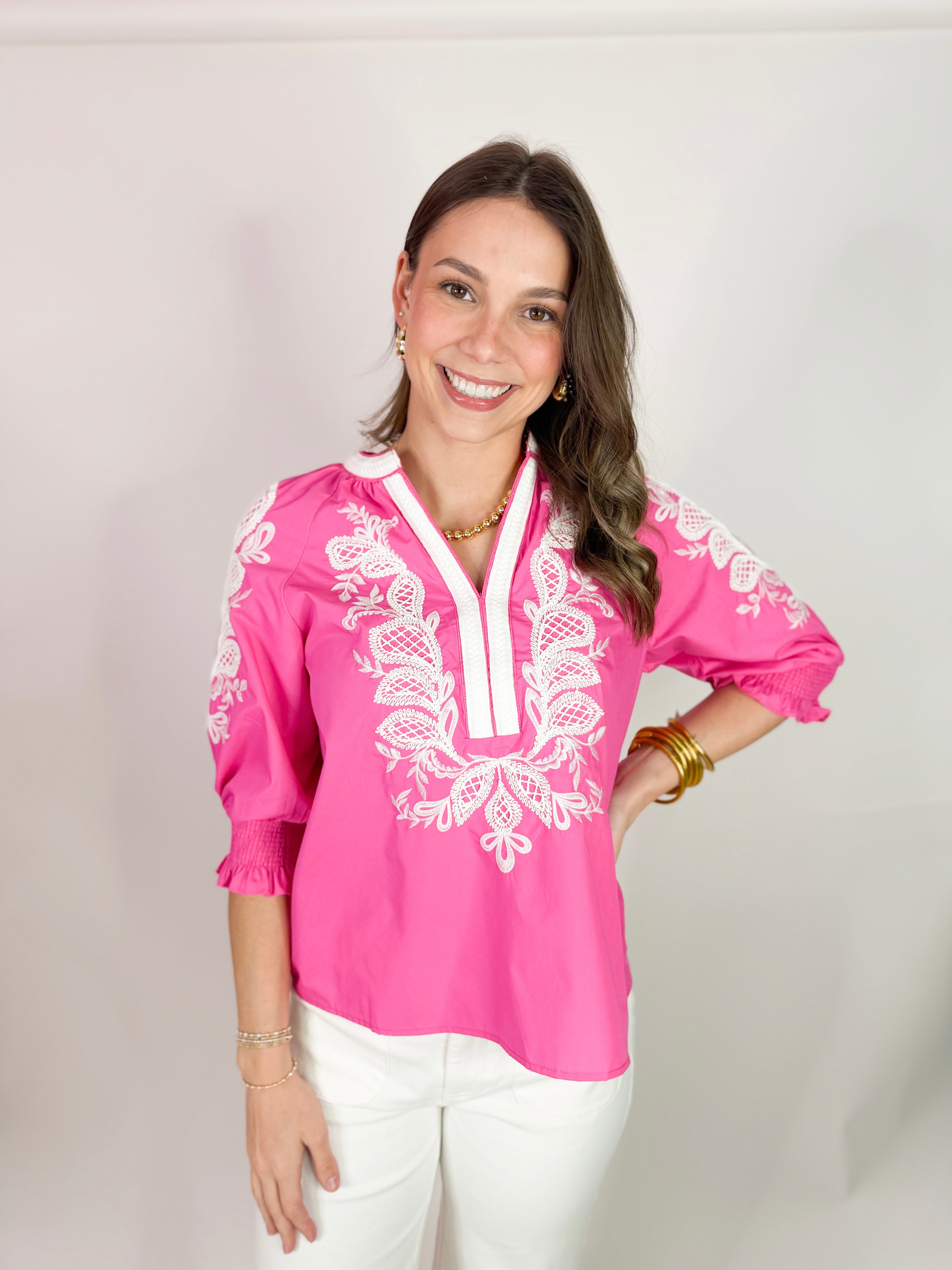 The Sheldon Embroidered Top-Pink