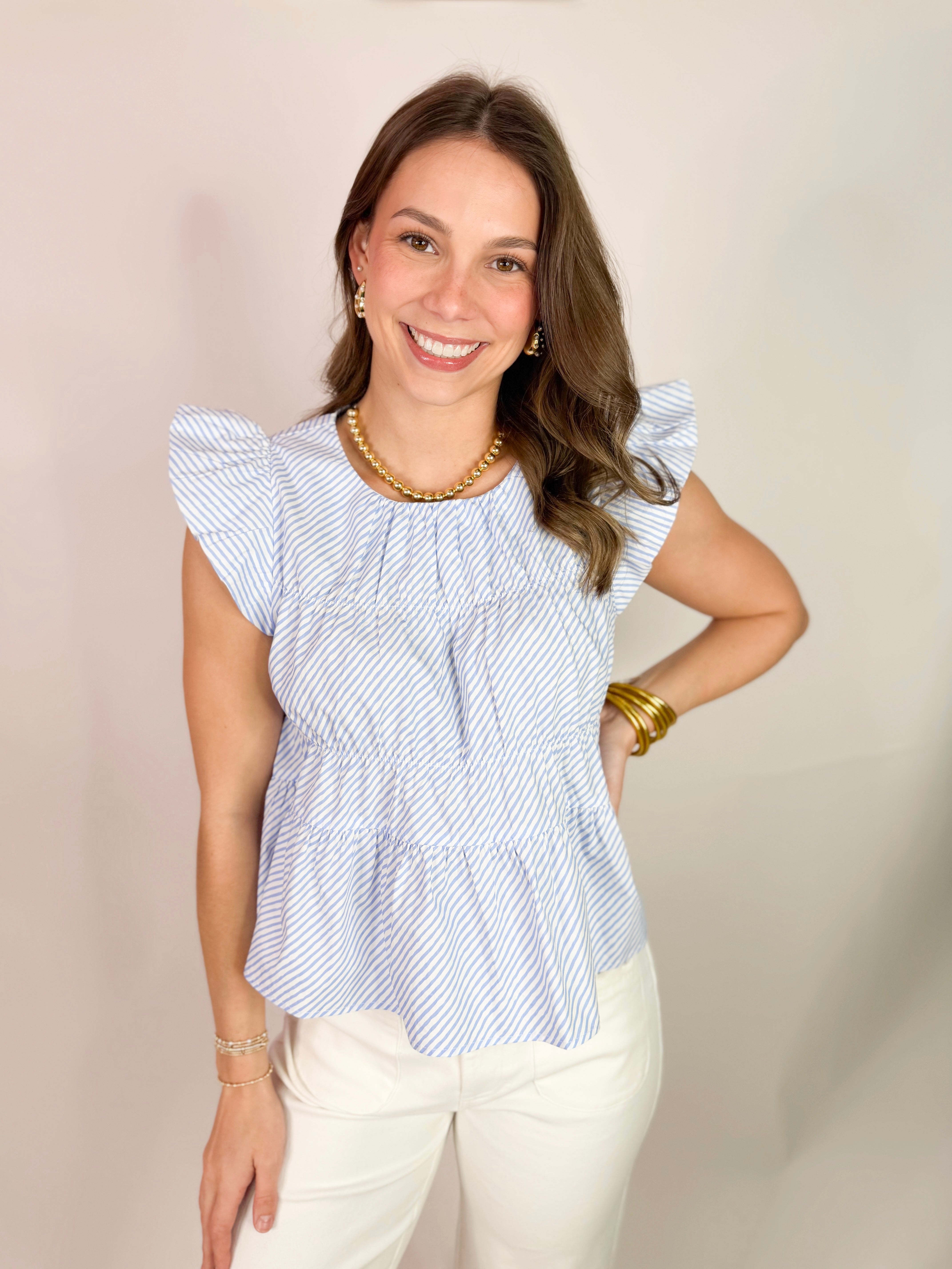 (THML) The Rosie Gingham Top-Blue