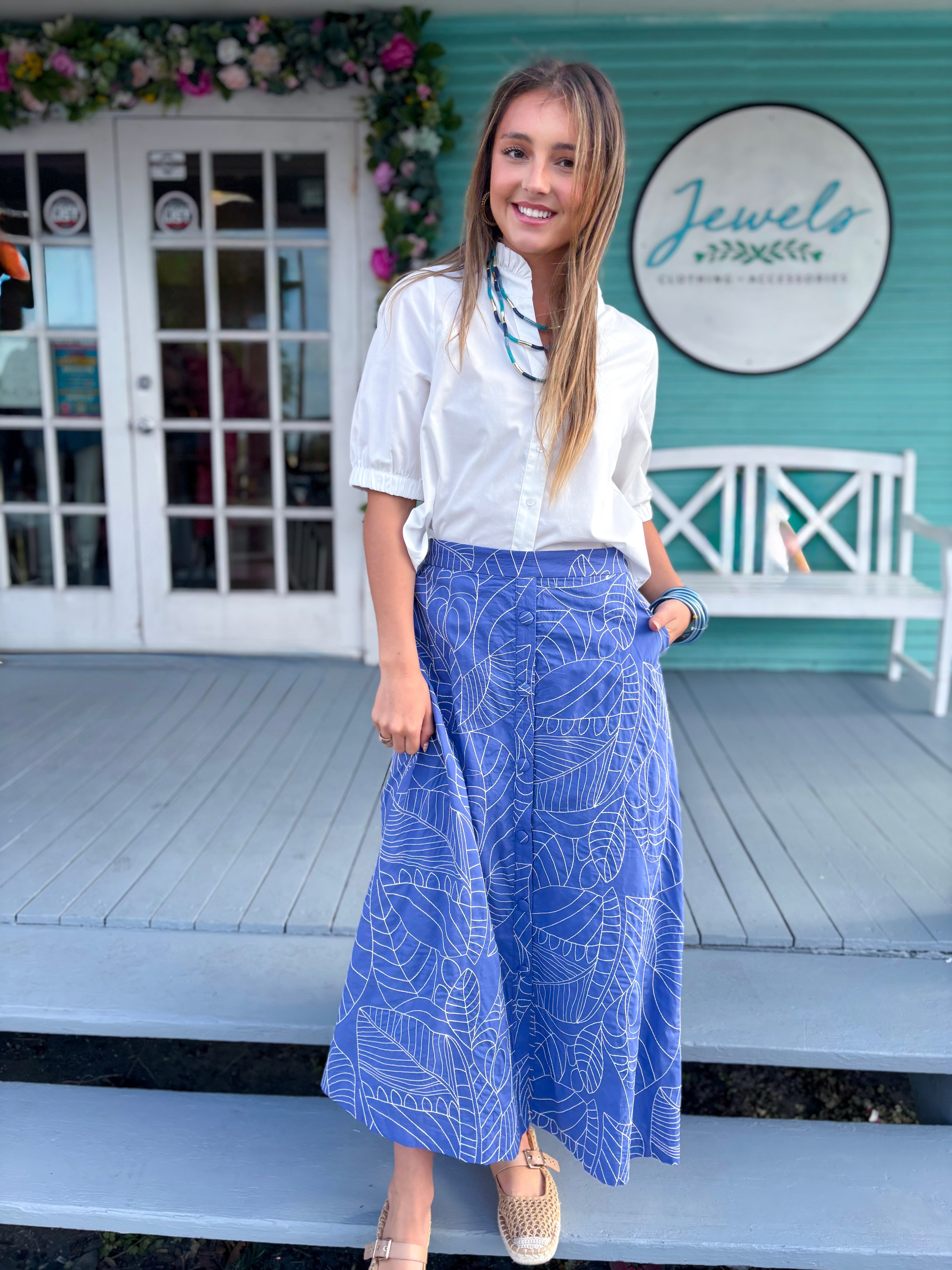 The Harlo Poplin Skirt-Blue