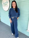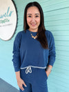 Your off-duty uniform just got a chic upgrade. Crafted from knit denim French terry with a lived-in mineral wash, this relaxed crew has that just-right slouch and an edge of raw hem detailing—perfect for layering over leggings or pairing with matching bottoms.