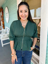 Flatter your figure with our Raina Zip Top. This stylish piece features a contoured ruched waist that defines your shape, while the zip-up front adds an edgy, modern touch. Crafted from a soft, stretchy fabric, it’s both comfortable and curve-enhancing — perfect for dressing up or down.