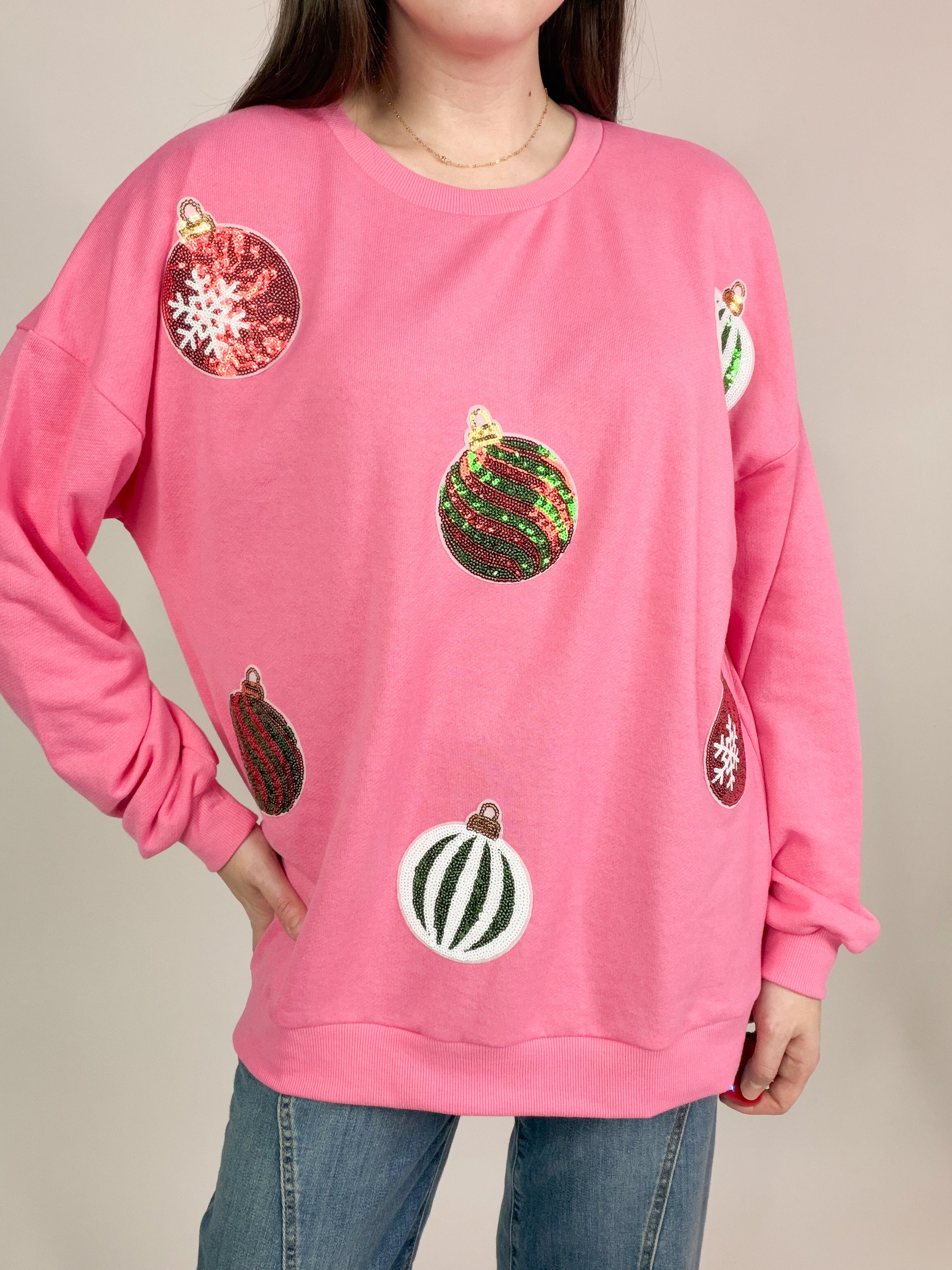 Get into the holiday spirit with this hot pink Christmas Queen sweatshirt, featuring festive ornament details! Cozy, playful, and full of cheer, it’s the perfect statement piece for holiday gatherings or lounging in festive style.