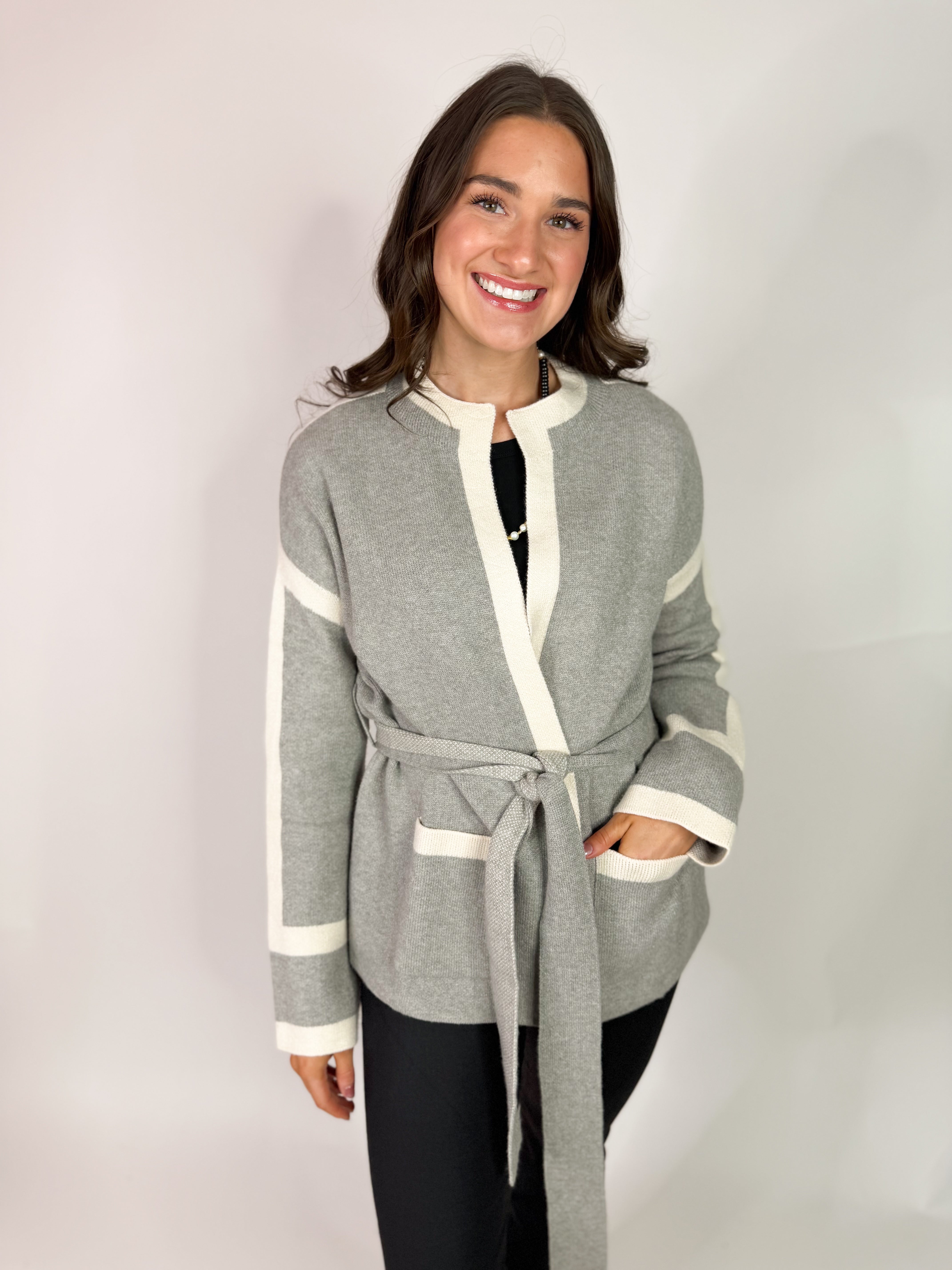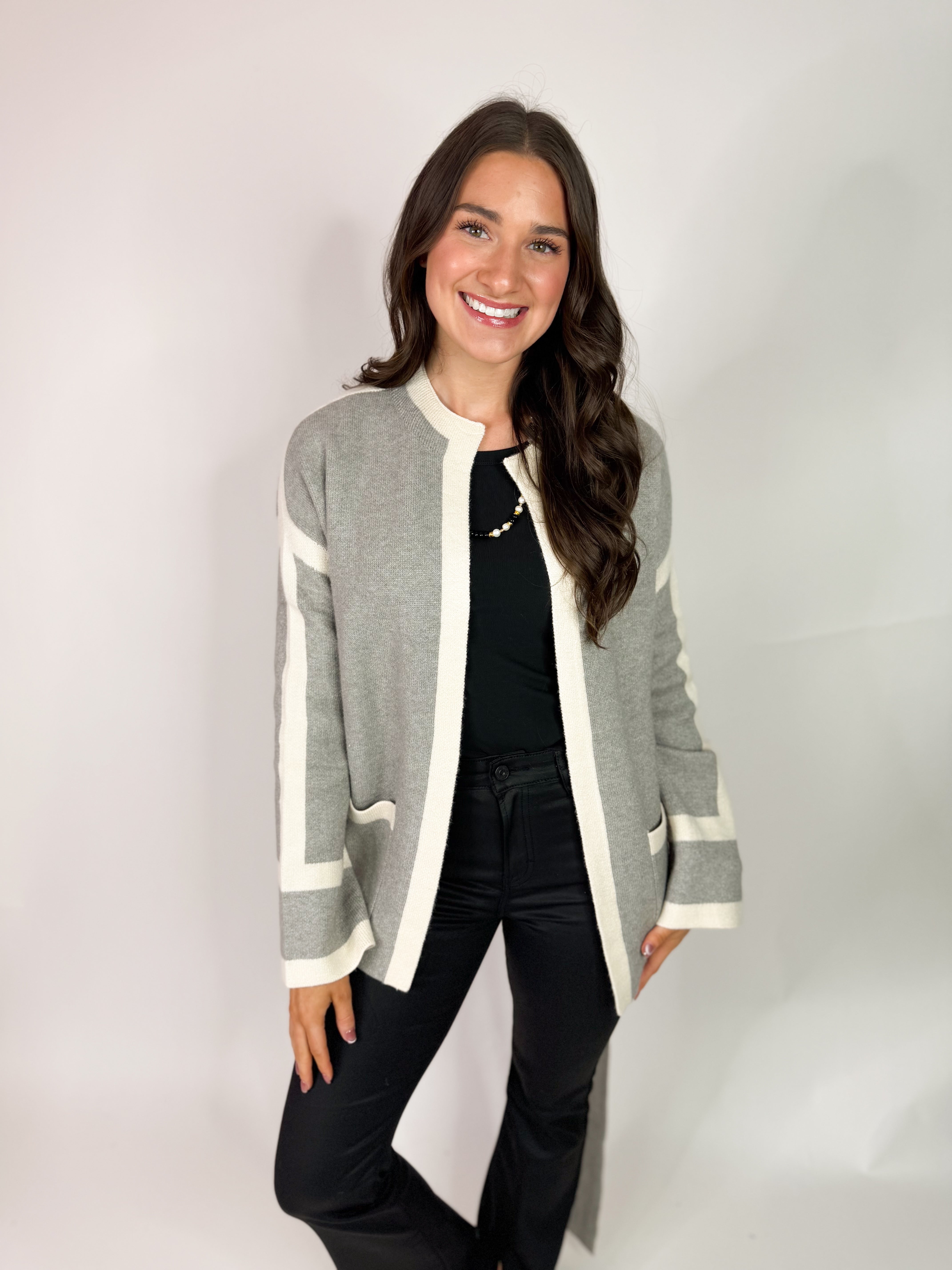 (THML) The Gracie Colorblock Cardigan-Grey