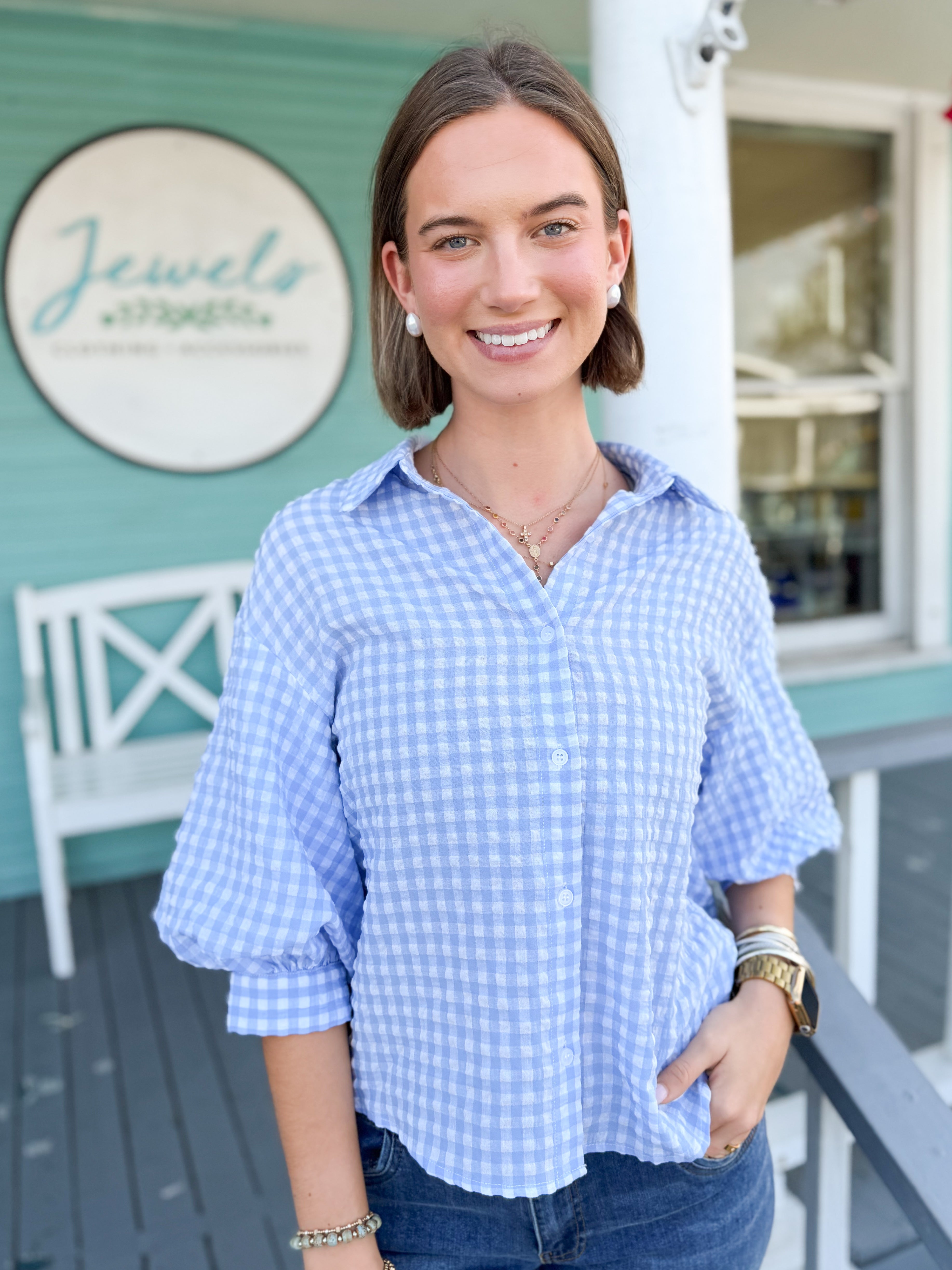 The Kiersten Gingham Top-Blue