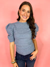 The Olivia Knit Sweater Top-Blue
