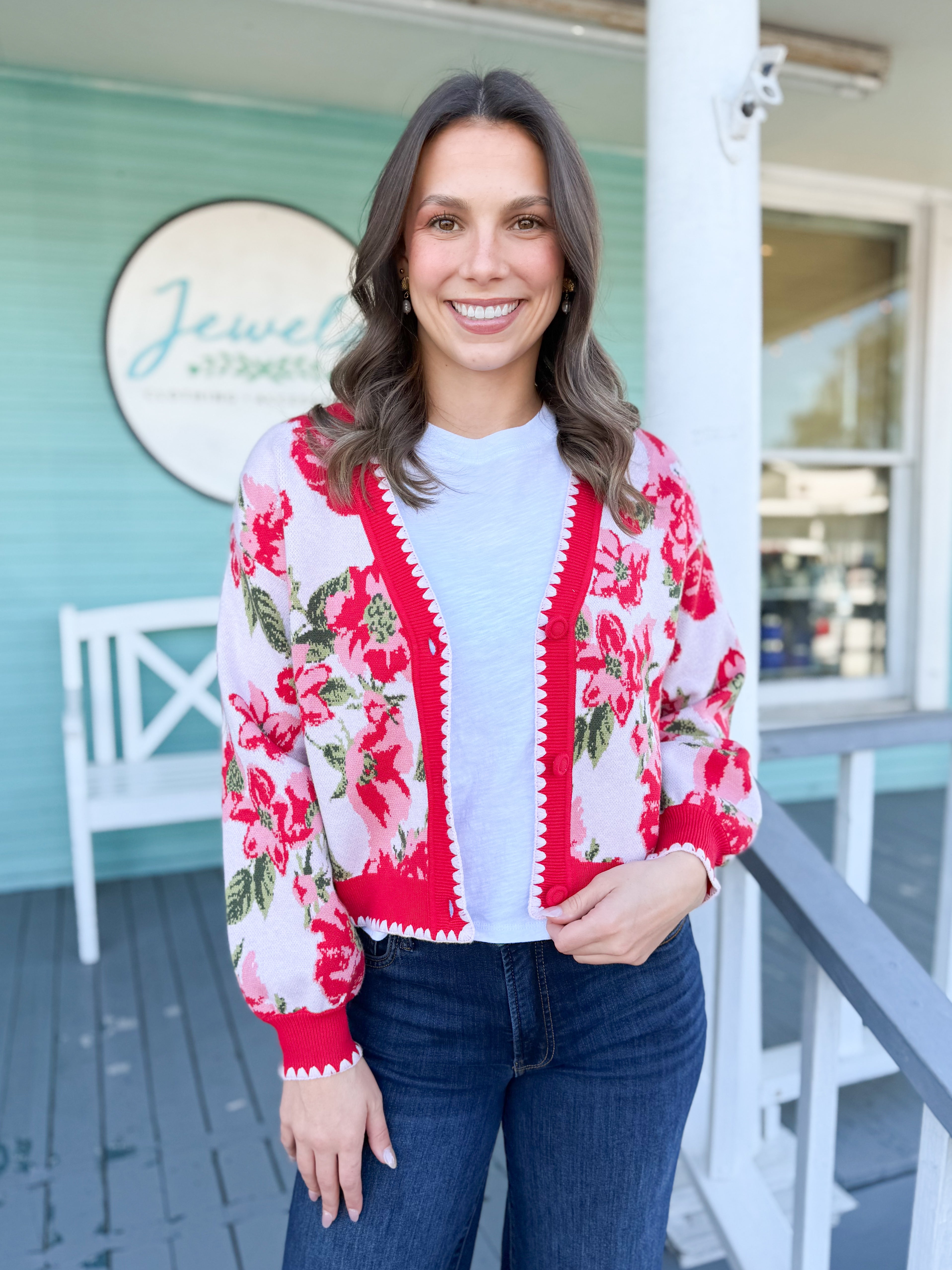 The Annia Floral Cardigan-Pink