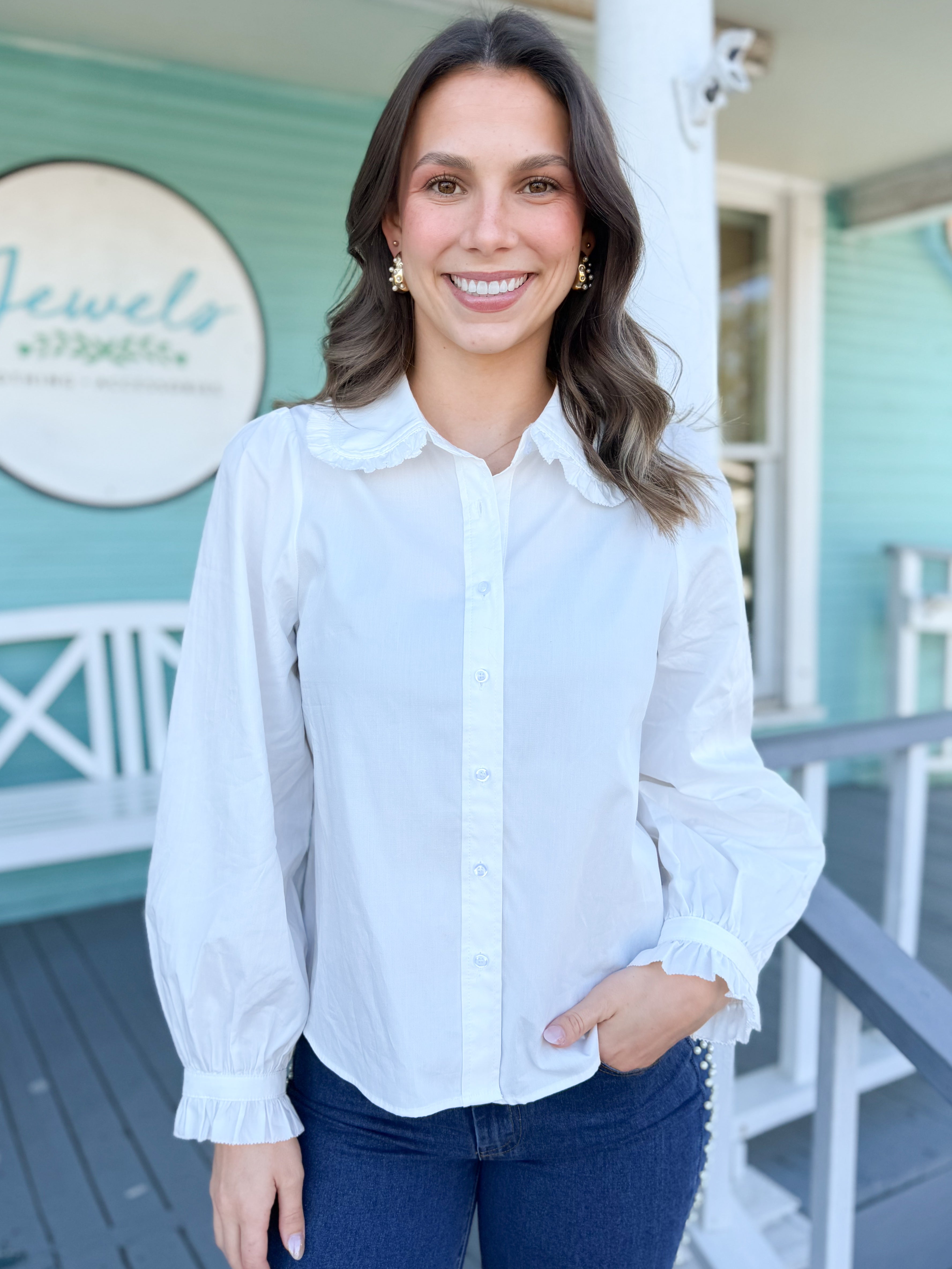 Timeless, versatile, and effortlessly chic, The Paige Collared Top in off white is a wardrobe essential. Crafted from soft, breathable fabric, it features a classic collar and a relaxed, flattering fit that works beautifully on its own or layered under sweaters and jackets. Its neutral hue makes it easy to pair with everything from jeans to tailored trousers.