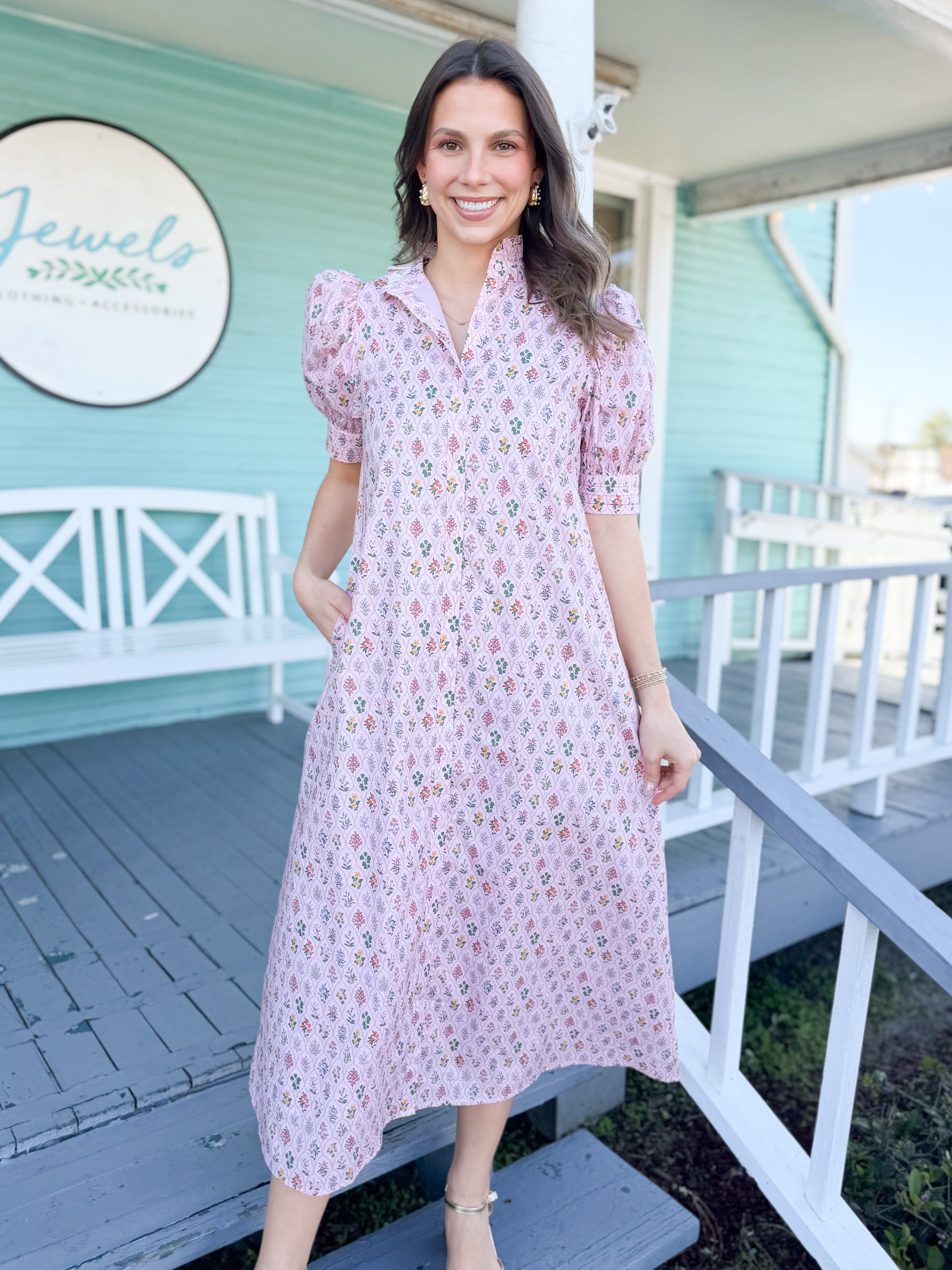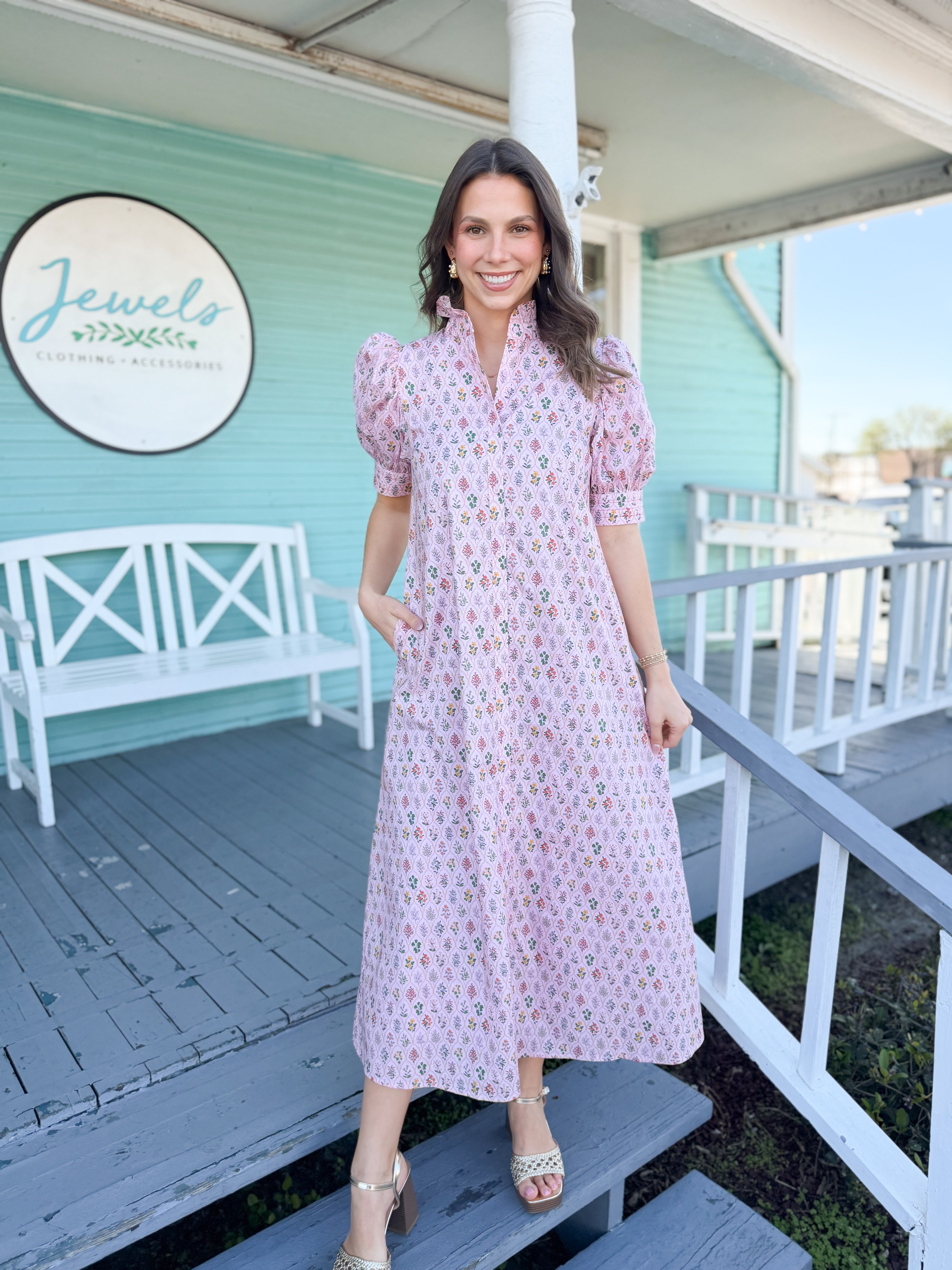 This Floral Print High Ruffled Mock Neck Button-Down Maxi Dress is a stunning statement piece designed for effortless elegance. Featuring a high ruffled mock neckline and a full button-down front, this maxi dress offers a graceful, flattering silhouette with timeless charm. The flowing maxi length and delicate floral print make it perfect for weddings, church events, special occasions, and elevated everyday wear. Style it with heels or boots for a look that transitions beautifully from day to night.