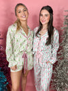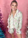 Snuggle up in the sweetest holiday style! These satin pajamas feature a charming Christmas tree print, silky-soft fabric, and delicate bow details. Finished with velvet piping for a soft, lovely touch of Christmas magic.